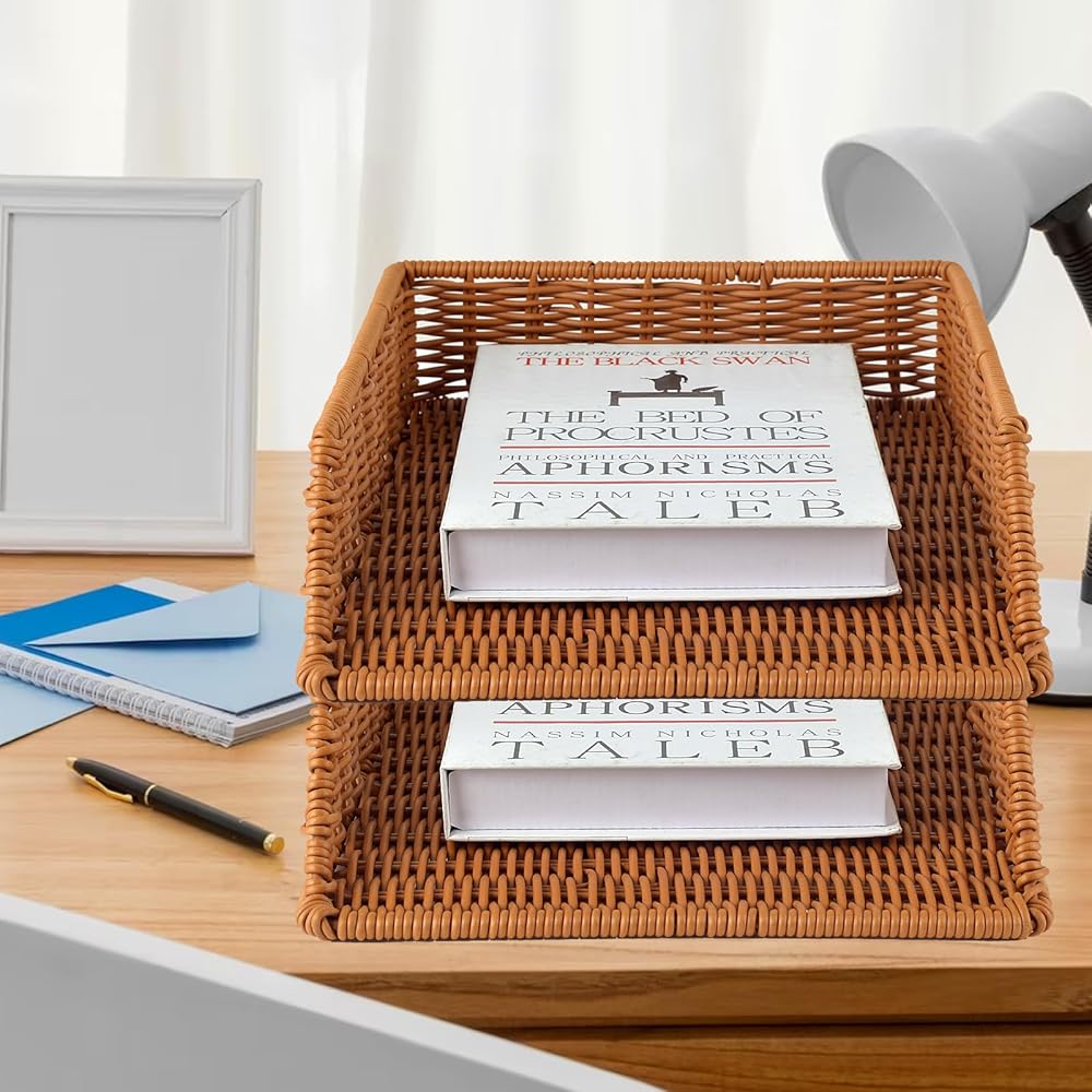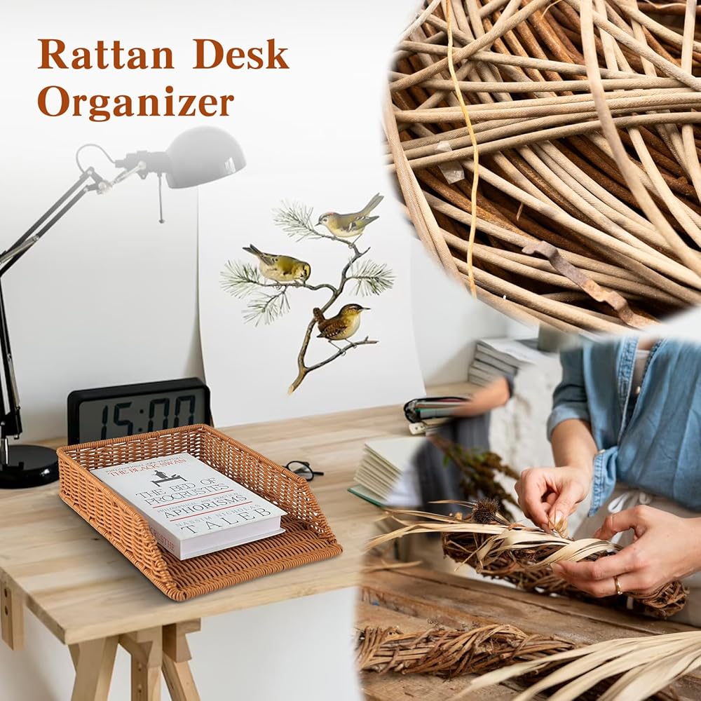 • 1.Rattan Letter Trays : Our paper tray basket is a delightful alternative to standard office filing systems. Sturdy and stackable rattan desk file organizer to help you organize and organize your desk, the perfect wicker accessory for your wicker desk.