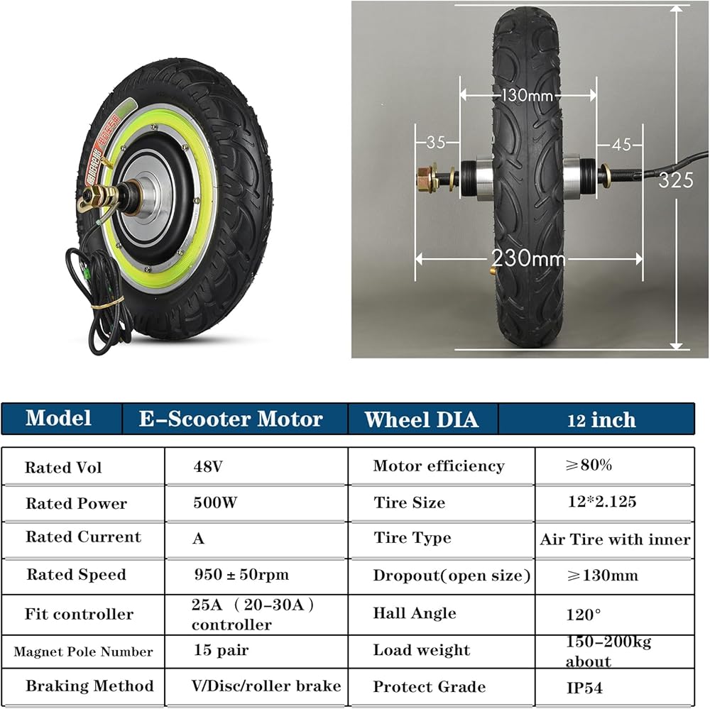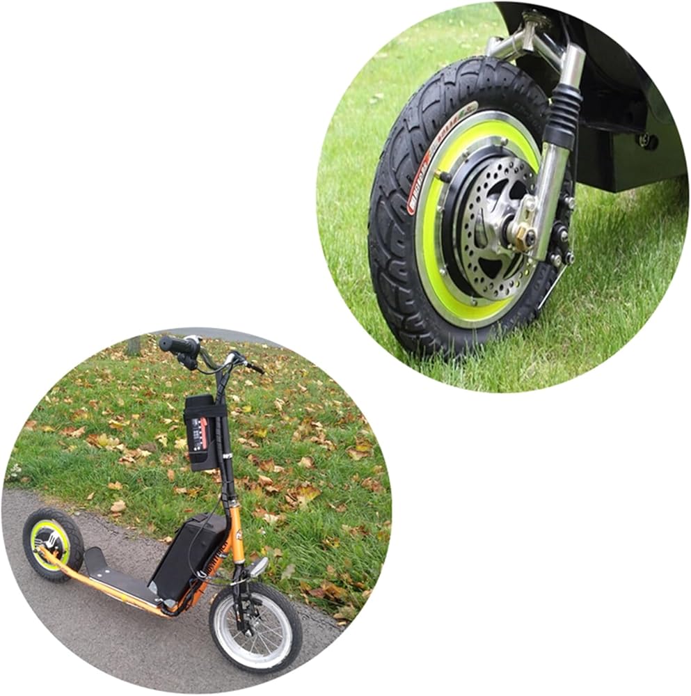 • عجلة محرك بمحور بدون تروس، السرعة المقدرة 650-800 دورة في الدقيقة، محرك محور العجلة بتيار 8A، إطار هوائي، طقم محرك سكوتر 10 بوصة.