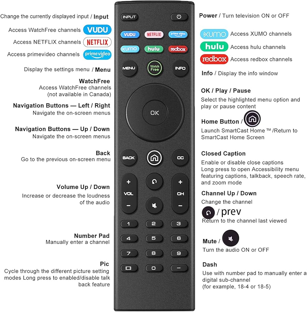 يناسب جهاز التحكم عن بعد جميع أجهزة التلفاز الذكية VIZIO LED LCD HD UHD HDR Smartcast 4K 3D، بما في ذلك D-Series وE-Series وM-Series وP-Series وPX-Series وV-Series وOLED-Series