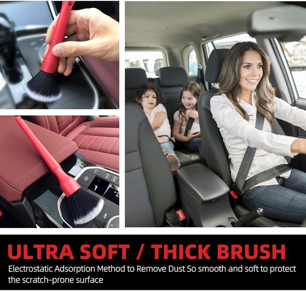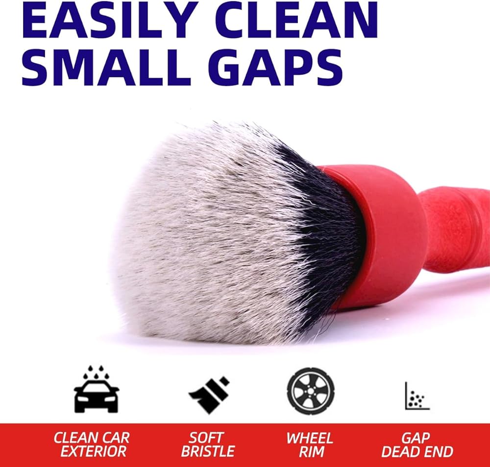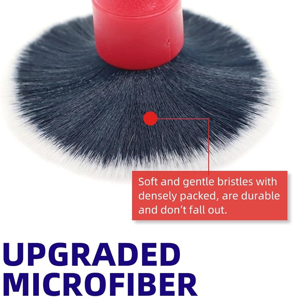 【تنظيف خالٍ من الخطوط 】شعيرات فرشاة التنظيف قوية بما يكفي لإزالة الأوساخ والغبار والحطام بسهولة، ولكنها ناعمة بما يكفي بحيث لا تترك علامات خدش على السطح المطلي والمطلي بالمسحوق والمصقول. يمنع البناء الحلقي الخالي من المعدن الخدش إذا اصطدمت بالسطح عن طريق الخطأ مما يجعله أكثر مستلزمات التفاصيل أمانًا لسيارتك.