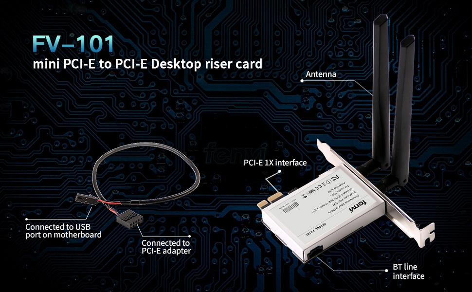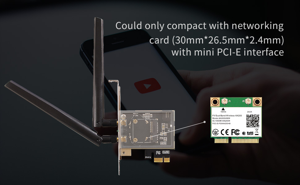 هذا مجرد محول لتوصيل بطاقة PCIe لاسلكية صغيرة بفتحة PCIe على اللوحة الأم للكمبيوتر الشخصي. إنها تحتاج إلى بطاقة PCIe لاسلكية صغيرة لتتوافق معها، و<b> لا تشتمل هذه الحزمة على بطاقة wifi بنصف الحجم!!!</b>
