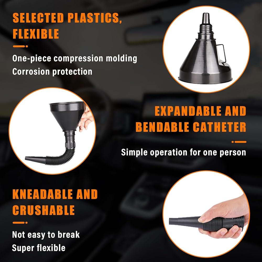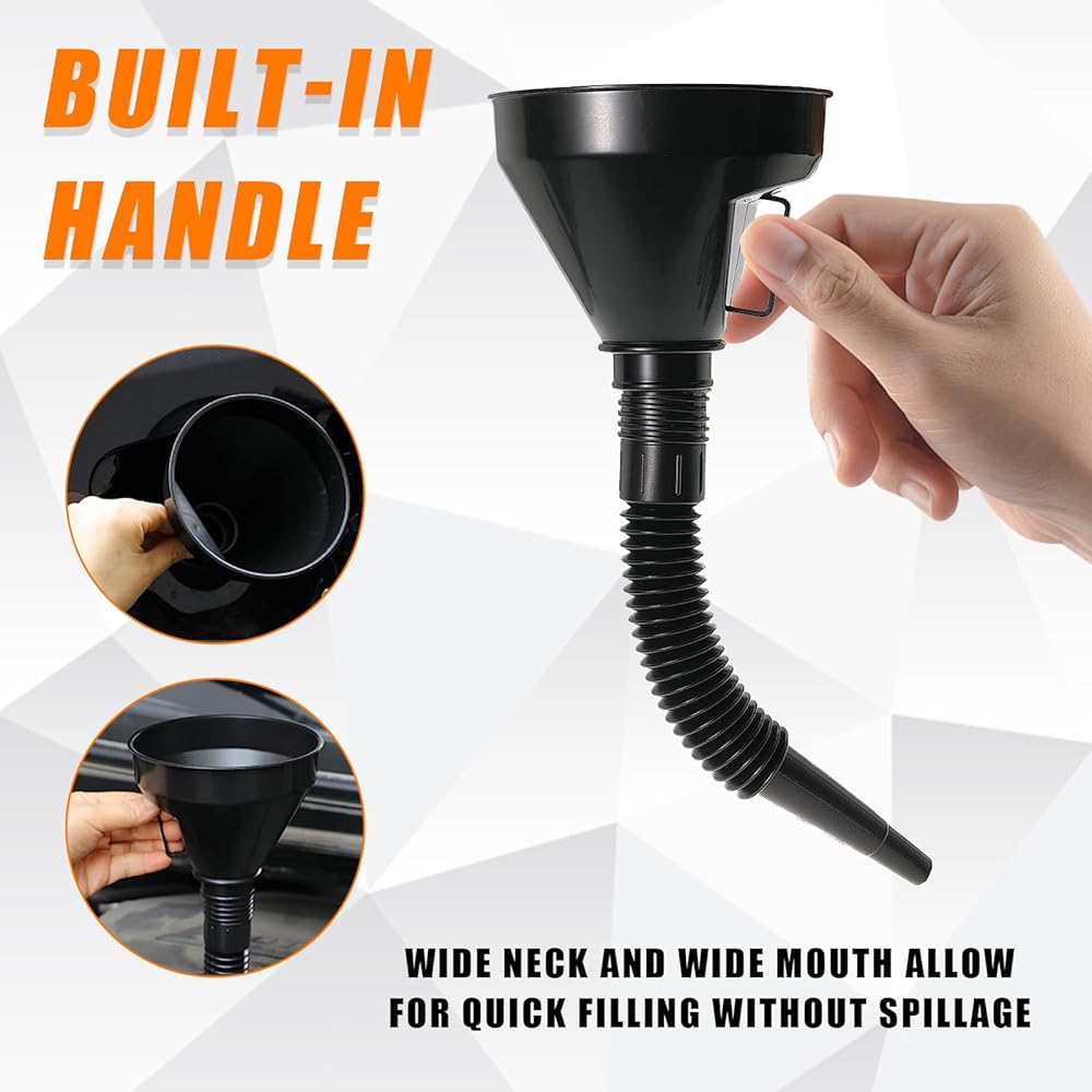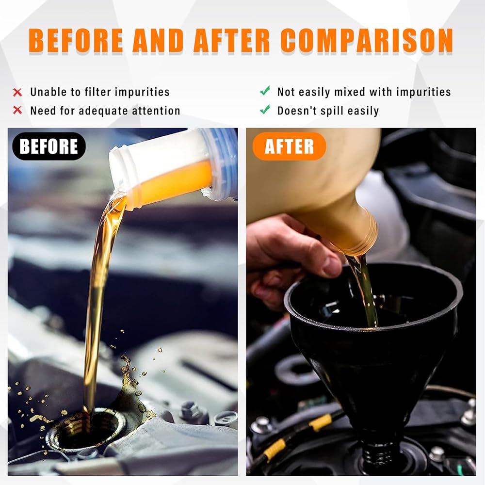 • 【Good Design】: This funnel is the last funnel you'll ever need! This heavy-duty funnel is perfect for any job that includes transferring fluids. The flexible funnel's smooth interior prevents any build-up of dirt that could lead to fluid contamination! Plus, it is flexible and easy to use in tight places.