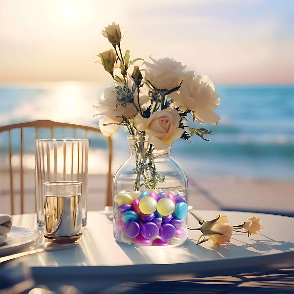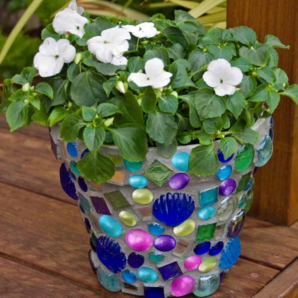 2 رطل من الأحجار الكريمة الزجاجية الملونة لحشو المزهرية، مشروع حرف الفسيفساء الرخامية المسطحة، أحجار ديكور الحفلات ذات موضوع حورية البحر، لهجات منزلية، أرجواني، أزرق، فوشيا، أصفر، ديكور صيف عيد الفصح