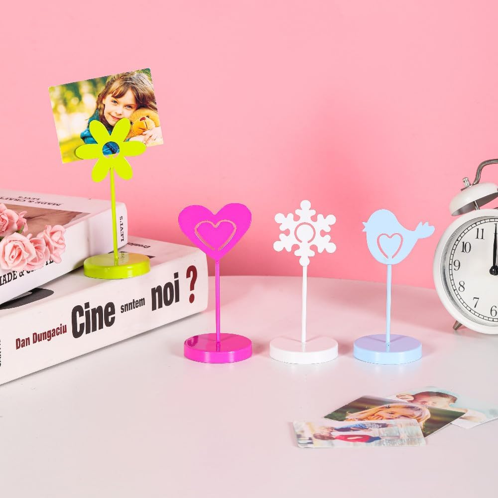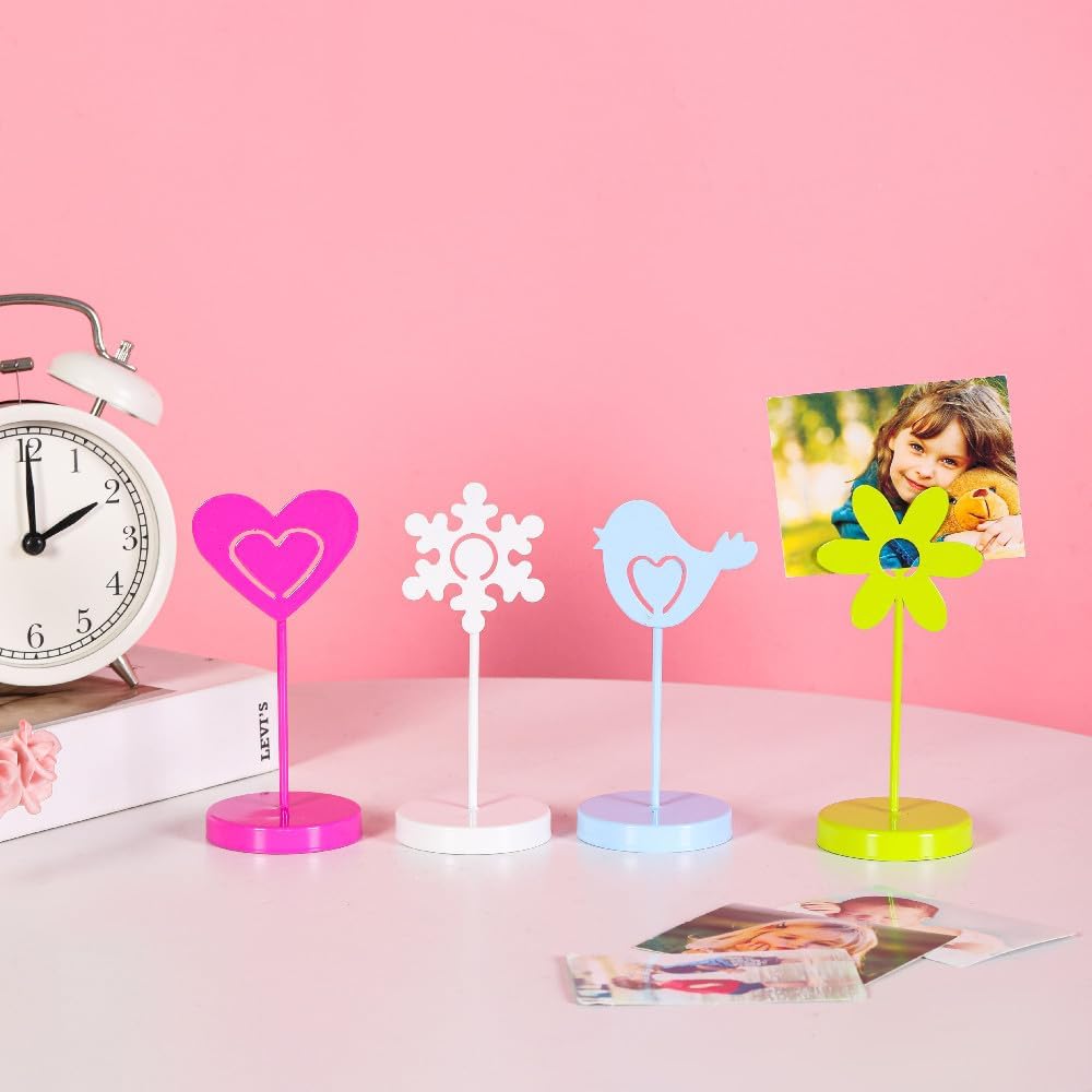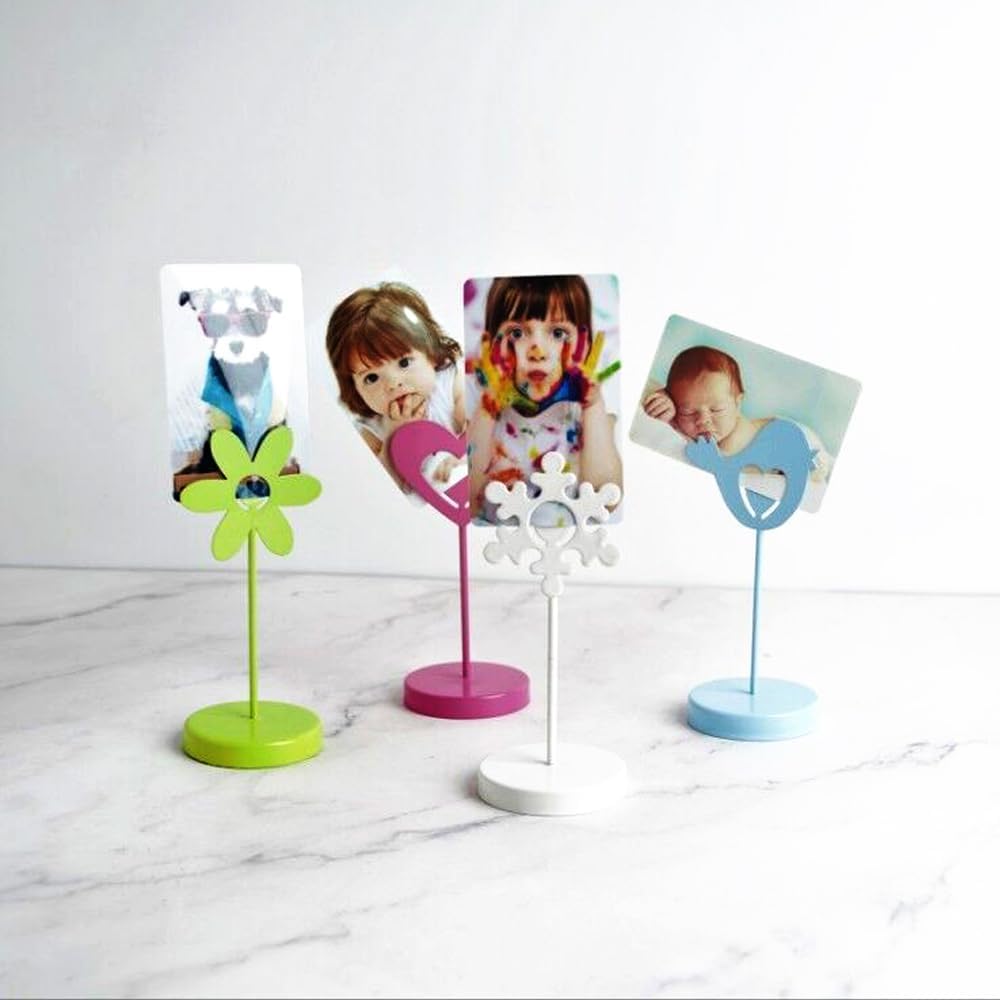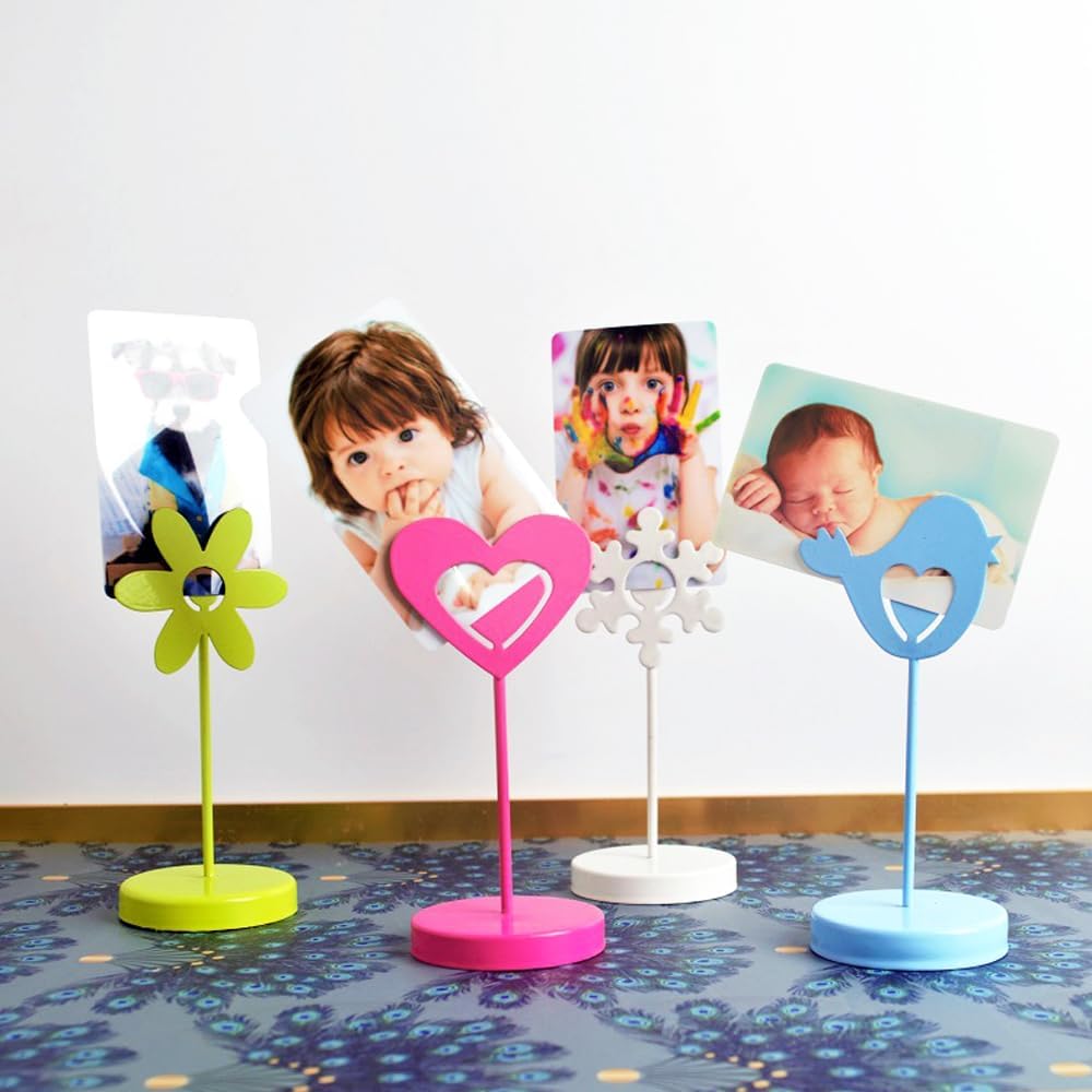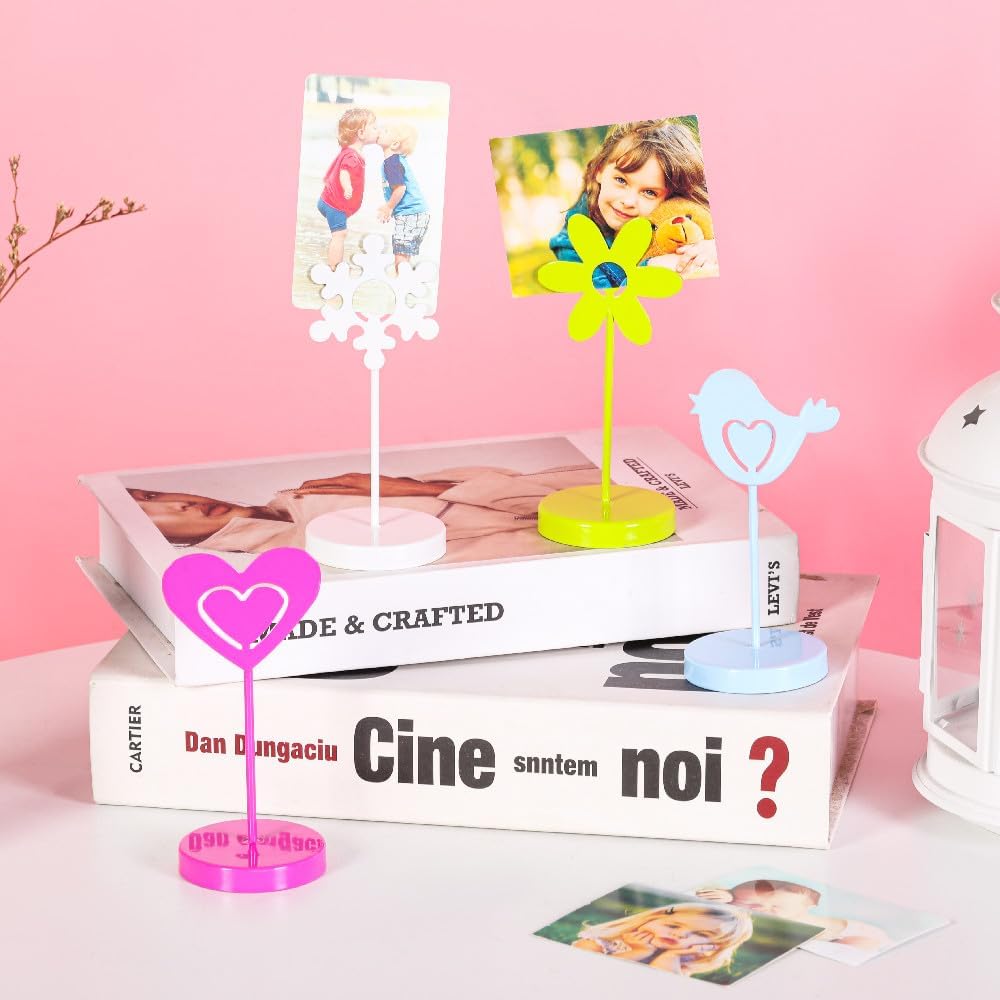 UNIQUE DESIGN: This playful tabletop picture stand and photo holder has a unique pinwheel shape, allowing pictures/photos/cards to be displayed in an attractive way.