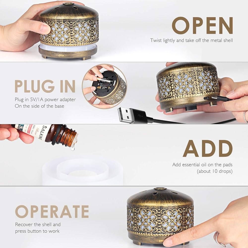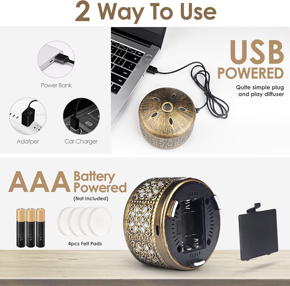 ✅ محتويات العبوة - حزمة قيمة! سوف تحصل على موزع روائح صغير وسلك USB و4 قطع من وسادات اللباد. تصميم معدني فريد من نوعه، يمكنك أيضًا استخدامه كديكور لطيف لطاولة رفيقك. إن موزعات الزيوت العطرية العلاجية الخاصة بنا هي أيضًا هدايا مدروسة ومفيدة للنساء. جميلة تصميم يجعلها هدية رائعة لعيد الميلاد وأعياد الميلاد وهدية الزفاف!