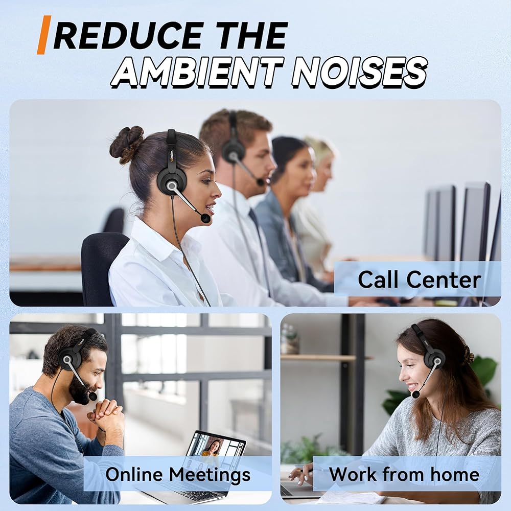 • [ميكروفون إلغاء الضوضاء]: سماعة الميكروفون للكمبيوتر مدمجة في إلغاء الضوضاء الذكي ونظام معالجة الصوت الذي يمكنه حجب الضوضاء غير المرغوب فيها وتوفير تجربة دردشة واضحة. يلتقط الميكروفون أحادي الاتجاه المانع للضوضاء صوتك بصوت عالٍ وواضح، وتوفر سماعة الهاتف هذه تجربة دردشة واضحة للغاية، بالإضافة إلى برامج تشغيل مكبر الصوت المحسنة بدقة تحديد المواقع الصوتية التي توفر صوتًا عالي الدقة