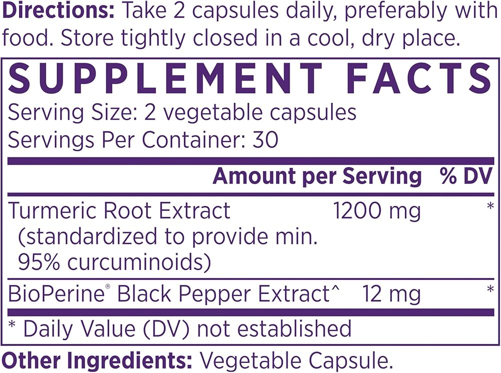 امتصاص عالي: يحتوي هذا المكمل المضاد للأكسدة على 1200 مجم من الكركمين والكركم بالإضافة إلى مستخلص الفلفل الأسود BioPerine لتعزيز الامتصاص بنسبة تصل إلى 2000%.
