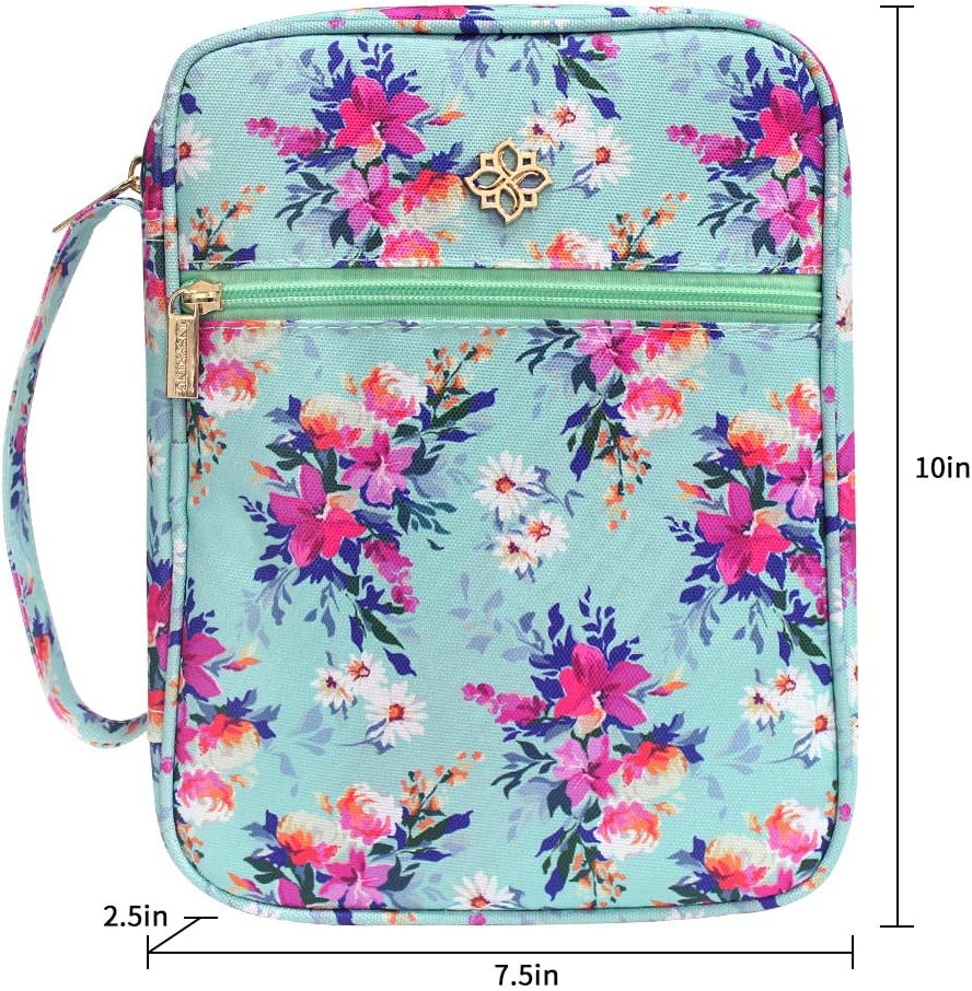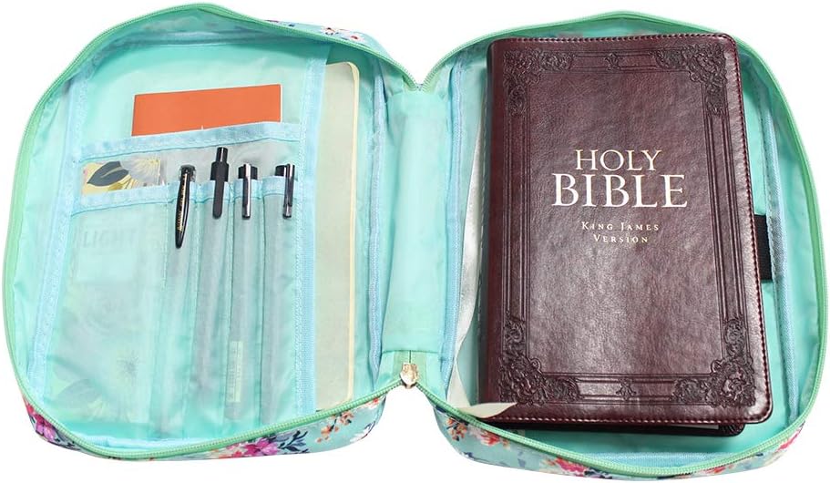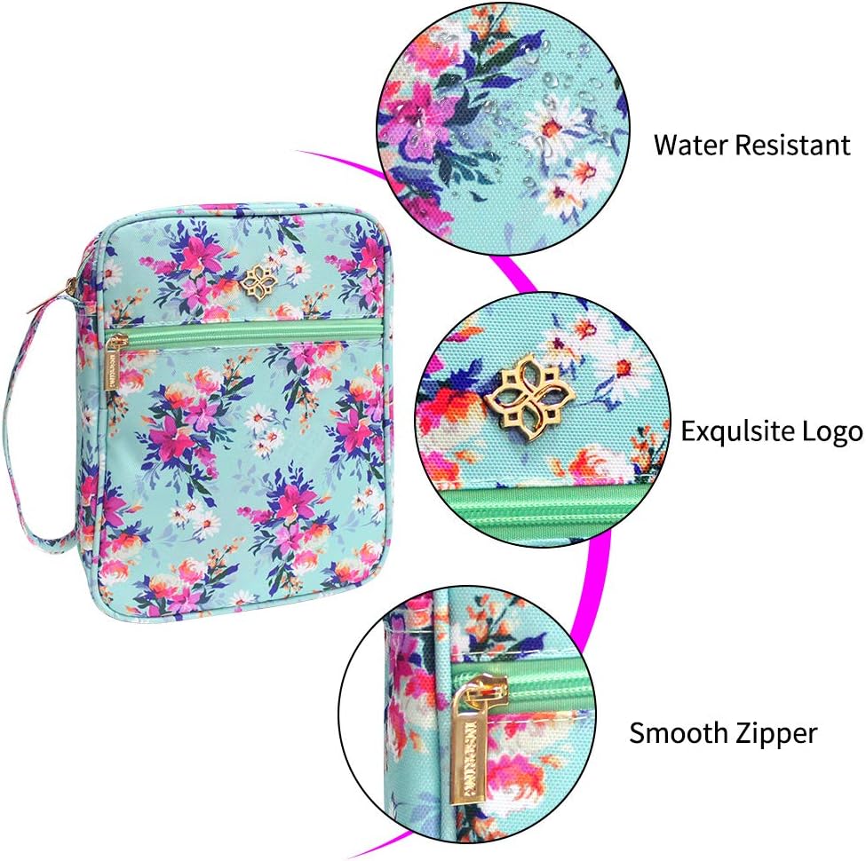 【عالية الجودة】 حافظة الكتاب المقدس بنمط الزهور مصنوعة من قماش البوليستر المقاوم للماء، وهو ناعم وخفيف وليس من السهل تشويهه، مع سحاب معدني متين وقوي، ناعم جدًا، مادة فاخرة تحمي غطاء الكتاب المقدس الخاص بك وتقلل من الأضرار الناجمة عن الاحتكاك.