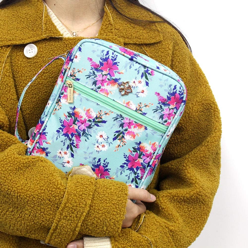 【متعدد الوظائف】 نمط زهور ساطع فريد، مطبوع بأصباغ صحية وصديقة للبيئة، ليس من السهل أن يبهت، يمكن مسحه أو غسله. يمكن استخدام حقيبة غطاء الكتاب المقدس هذه كحقيبة يد، وحقيبة مستحضرات تجميل، وحقيبة آيباد، وغطاء كتب، ومنظم وحقيبة تخزين، إلخ.