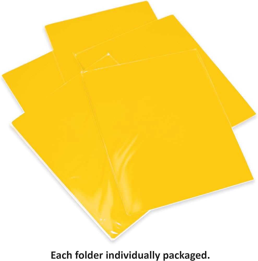 عبوة كبيرة: 12 عبوة ملفوفة بشكل فردي مقاس 9.375 بوصة × 11.625 بوصة صفراء 0.5 مم من مادة البولي بروبيلين ثقيلة الوزن للغاية مع لمسة نهائية عاكسة شديدة اللمعان