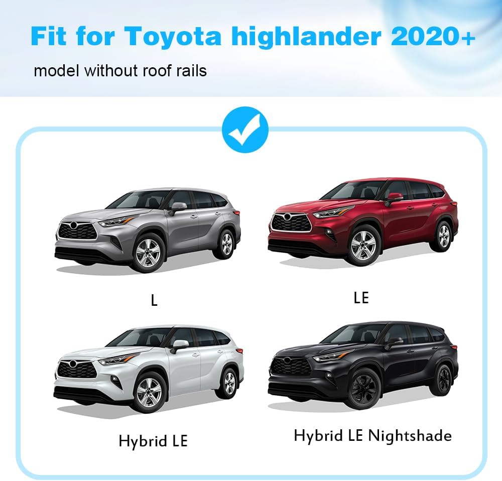 رفوف سقف القضبان المتقاطعة مناسبة لـ 2020 2021 2022 2023 2024 Toyota Highlander L & LE & Hybrid LE & Hybrid LE Nightshade Luggage Crossbars Cargo Carrier (بدون قضبان)