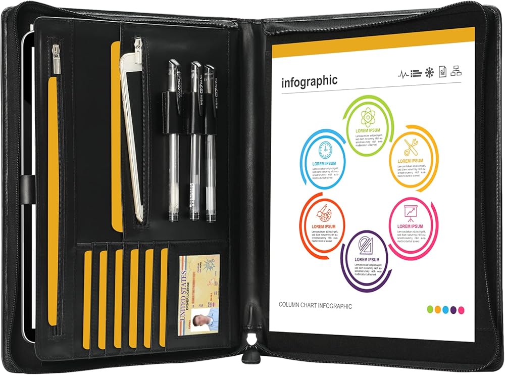 محفظة جلدية ذات طراز عتيق: Padfolio مناسب جدًا لجميع نخبة الأعمال. كما أن غلاف دفتر الملاحظات المزود بسحاب مصنوع يدويًا على يد حرفيين ذوي خبرة. أنيقة لا تخرج عن الأناقة أبدًا. سحر مصنوع يدويًا.