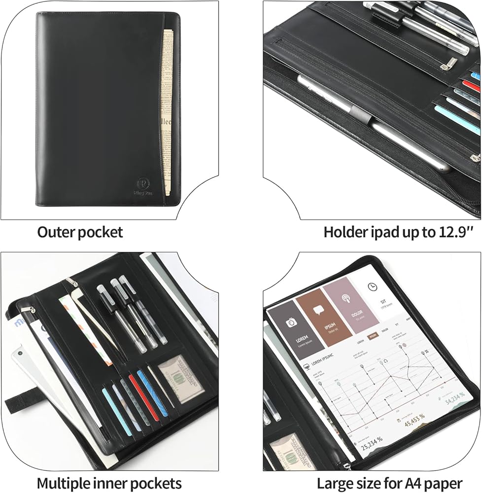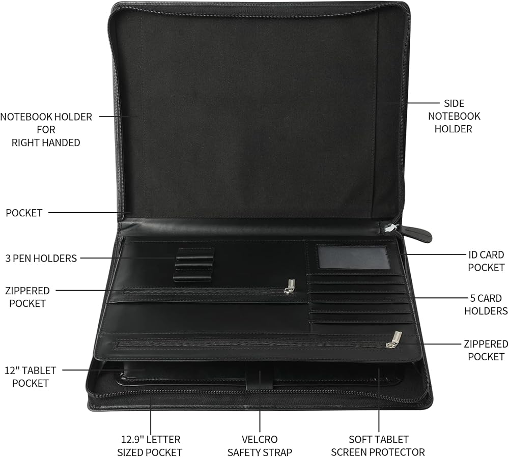 سعة كبيرة للغاية وحجم مثالي: مقاس 25.4 سم × 33.02 سم، لوحة ملاحظات قابلة لإعادة الملء مقاس 22.86 سم × 27.94 سم. يحتوي المجلد الجلدي على العديد من الجيوب لتخزين ملحقات العمل اليومية، مثل المستندات والدفتر والأقلام والبطاقات والوسادة القانونية، المفكرة بحجم الرسالة وما إلى ذلك. سوف يجعلك منظمًا، ويجعلك تبدو رائعًا. قل وداعًا للأشياء غير المنظمة، وحافظ على العناصر الفوضوية منظمة.