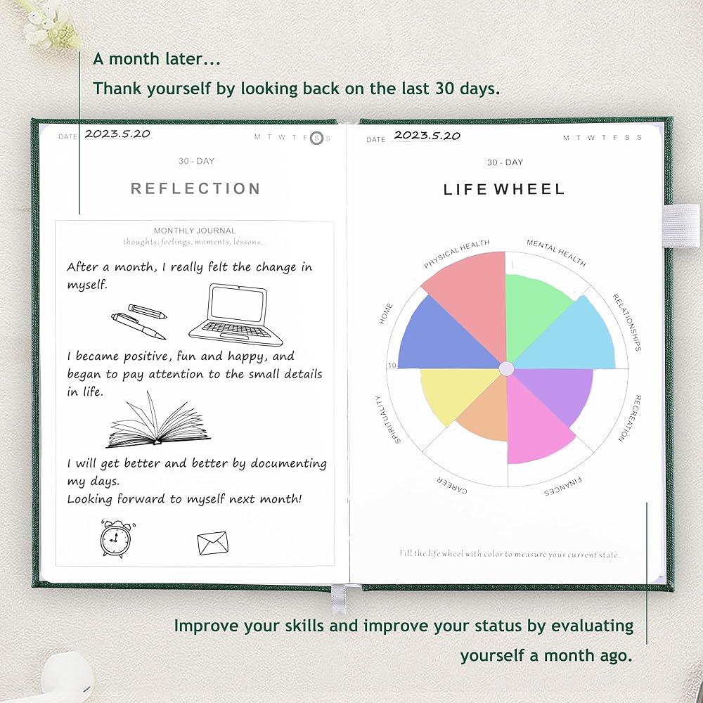 • قم بتأسيس ممارسة يومية بشأن الامتنان: إن مجلة الدقائق الخمس يوميًا تلهم الشكر وتتطلع إلى إضافة المزيد من التفكير الإيجابي إلى الحياة. تمنحك هذه المجلة الفرصة لتحديد نواياك لهذا اليوم، وفرصة للتأمل بامتنان، ولتقليل التأثير السلبي والقلق، وتعزيز صحتك العقلية والجسدية.