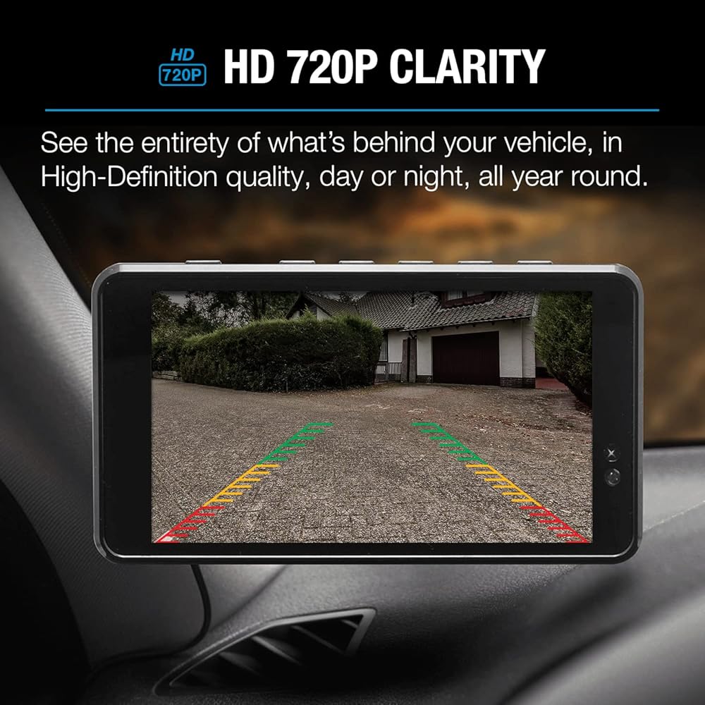 [Durable & Reliable] The Hi-Definition backup camera is engineered with extremely durable IP67 material that's built to withstand any kind of condition; rain, snow, or heat… it'll stay securely attached to the back of your vehicle. The suction cup of the monitor is designed to stick tightly on your windshield, allowing you to safely focus on driving.