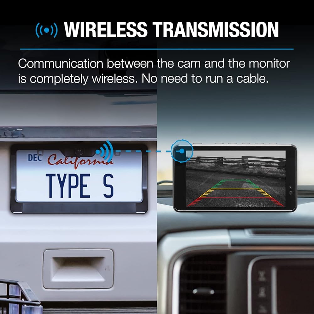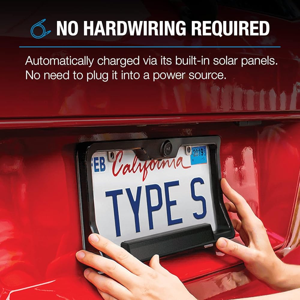[No Hardwire, Seamless Install] The easiest installation you'll ever find. This TYPE S HD backup camera charges itself through its built-in solar panels, no need to hardwire it into anything. What's more, the transmission between the HD cam and the monitor is complete wireless so there won't be a cable running through your vehicle.