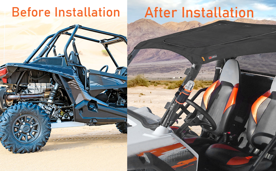 • الملاءمة: هذا السقف الناعم مناسب لموديلات 2012 - 2019 UTV Polaris RZR 1000 (S، XP، XP Turbo) بمقعدين، متوافق مع موديلات 2015 - 2019 UTV Polaris 900 (S، Trail، XC) بمقعدين.