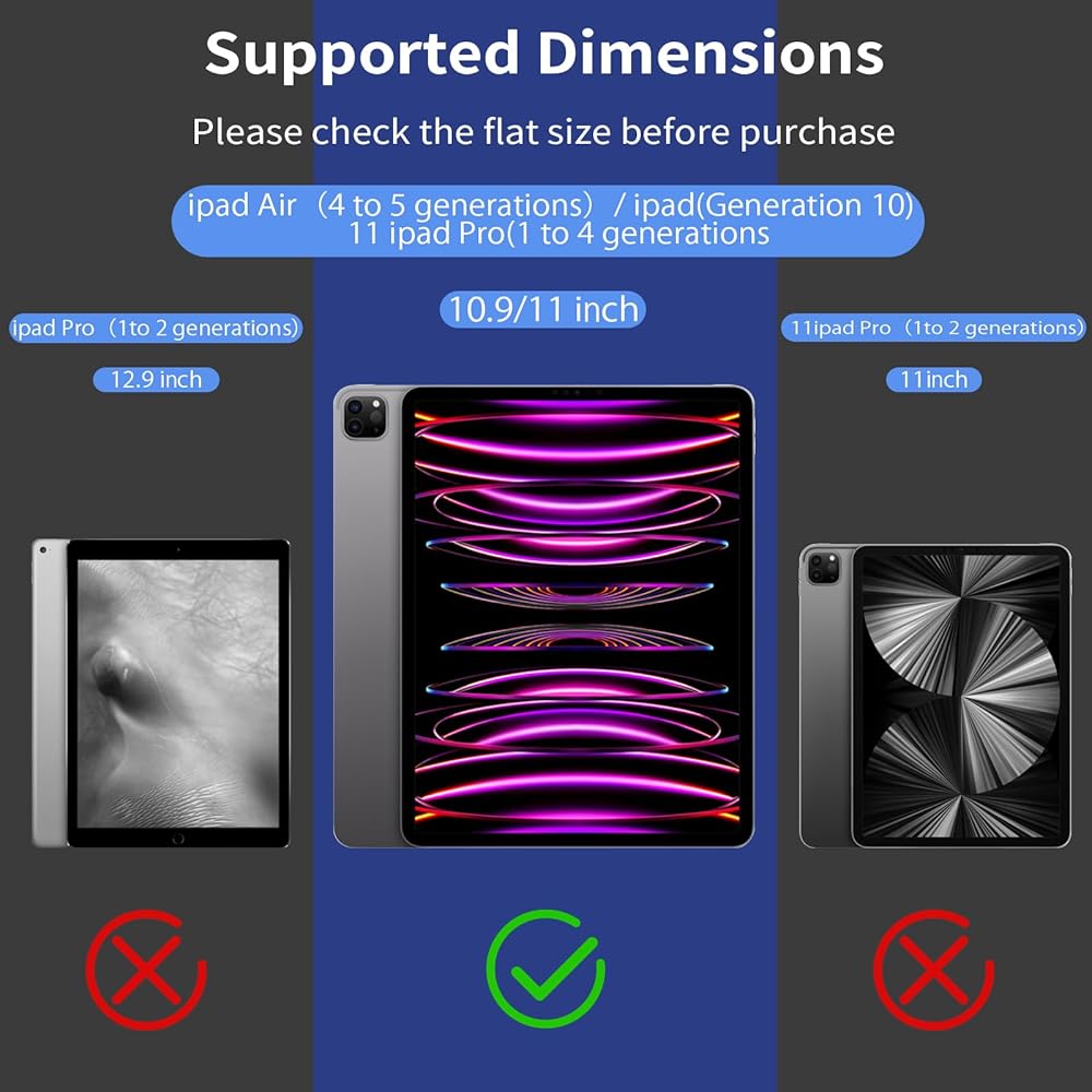 iPad pro 12.9 screen protector Compatibility: Specially design for iPad 12.9 screen protector (6th/5th/4thGeneration,2022/2021/2020/2018), Not for iPad Pro 11 or any other models (Please check back bottom of your iPad to find the model )