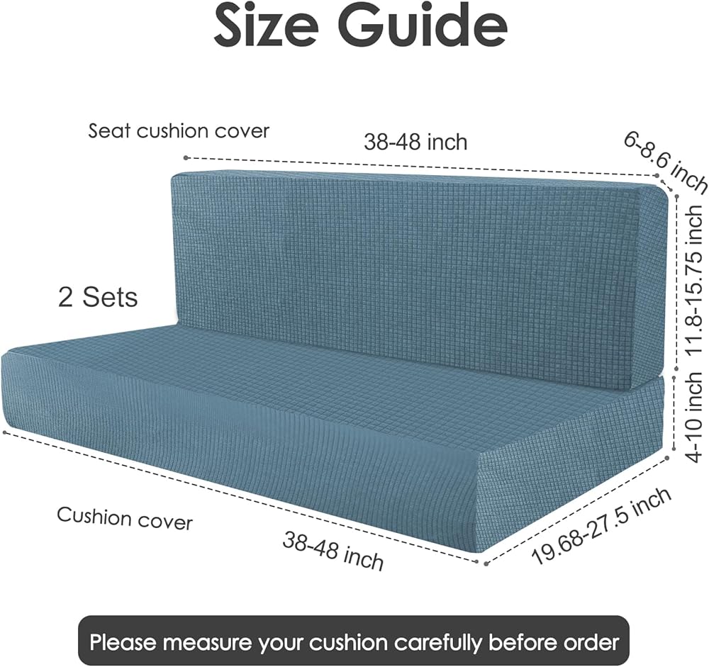 【دليل المقاسات】 تتضمن العبوة غطاء وسادة مسند الظهر وغطاء مقعد، مما يوفر حلاً كاملاً لحماية وسادة RV الخاصة بك. يبلغ مقاس غطاء وسادة مسند الظهر ما يصل إلى 38-48 بوصة طولًا، و11.8-15.75 بوصة عرضًا، و6-8.6 بوصة سمكًا. يبلغ قياس غطاء المقعد ما يصل إلى 38-48 بوصة طولًا، و19.68-27.5 بوصة عرضًا، و4-10 بوصة سمكًا. مرونة ممتازة، مناسبة لأكثر من 90% من وسائد RV المتوفرة في السوق. لضمان الملاءمة المثالية، يرجى قياس وسادتك قبل الشراء.
