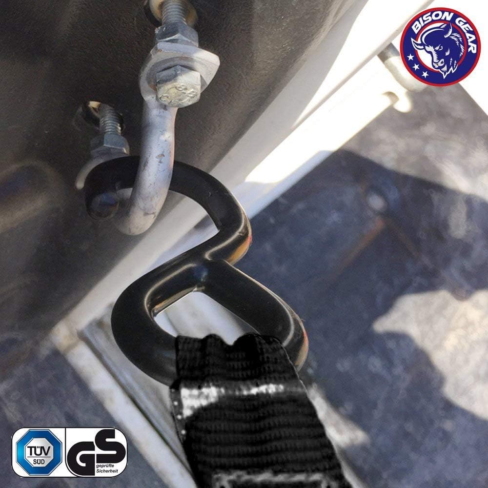 ◀ راحة البال - أحزمة السقاطة شديدة التحمل بطول 20 قدمًا معتمدة من GS. وهذا يعني أنهم اجتازوا معايير السلامة الفنية الألمانية الصارمة. على عكس أحزمة إبزيم الرموش أو الكاميرا، لن ترتخي أحزمة السقاطة الخاصة بنا في الرحلات الطويلة، لذا بغض النظر عن ما تنقله على رف سقف سيارتك أو سيارة الدفع الرباعي أو الشاحنة أو المقطورة، فإن حمولتك آمنة ومأمونة.