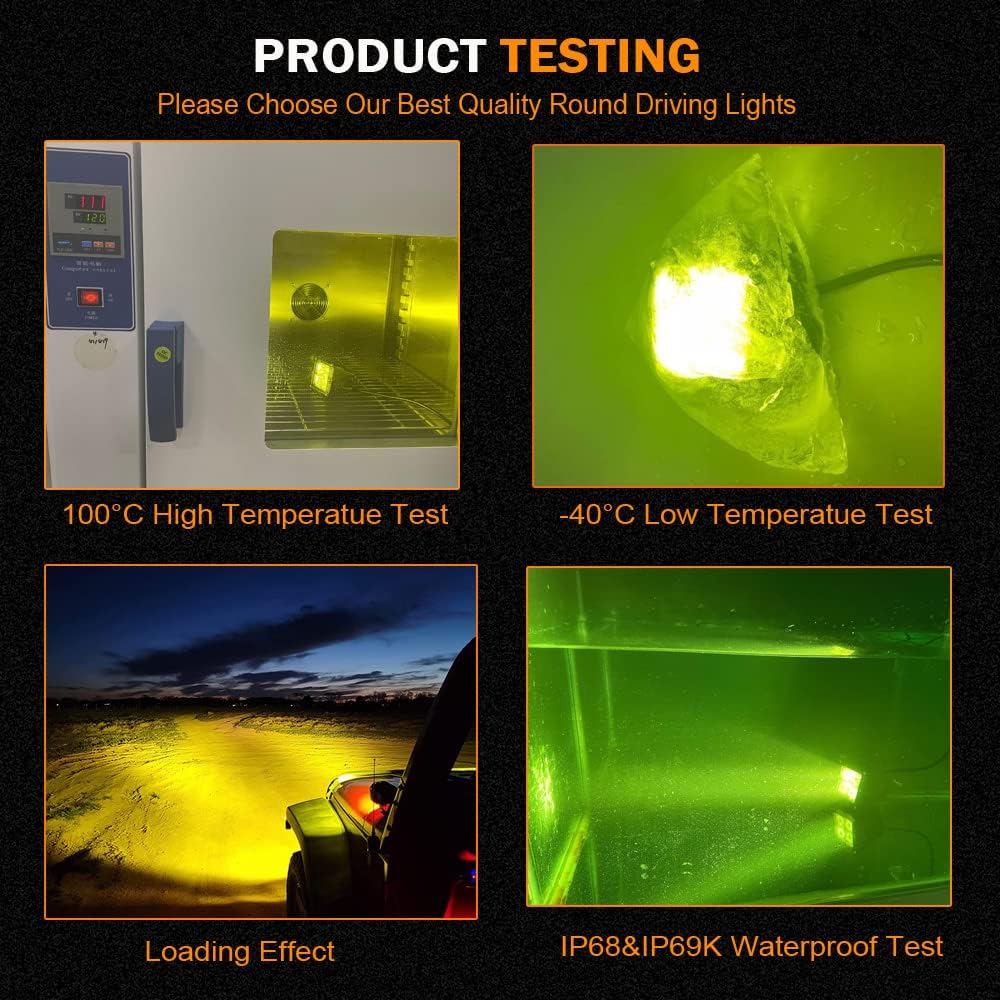 • 【درجة عالية مقاومة للماء】تتوافق مصابيح القيادة على الطرق الوعرة الصفراء مع معيار IP68. تتميز مصابيح الضباب LED الصفراء بخصائص مقاومة للماء والغبار والصدمات. تعزيز استخدام مصابيح المصد الصفراء المقاومة للماء من الموثوقية في البيئة القاسية.