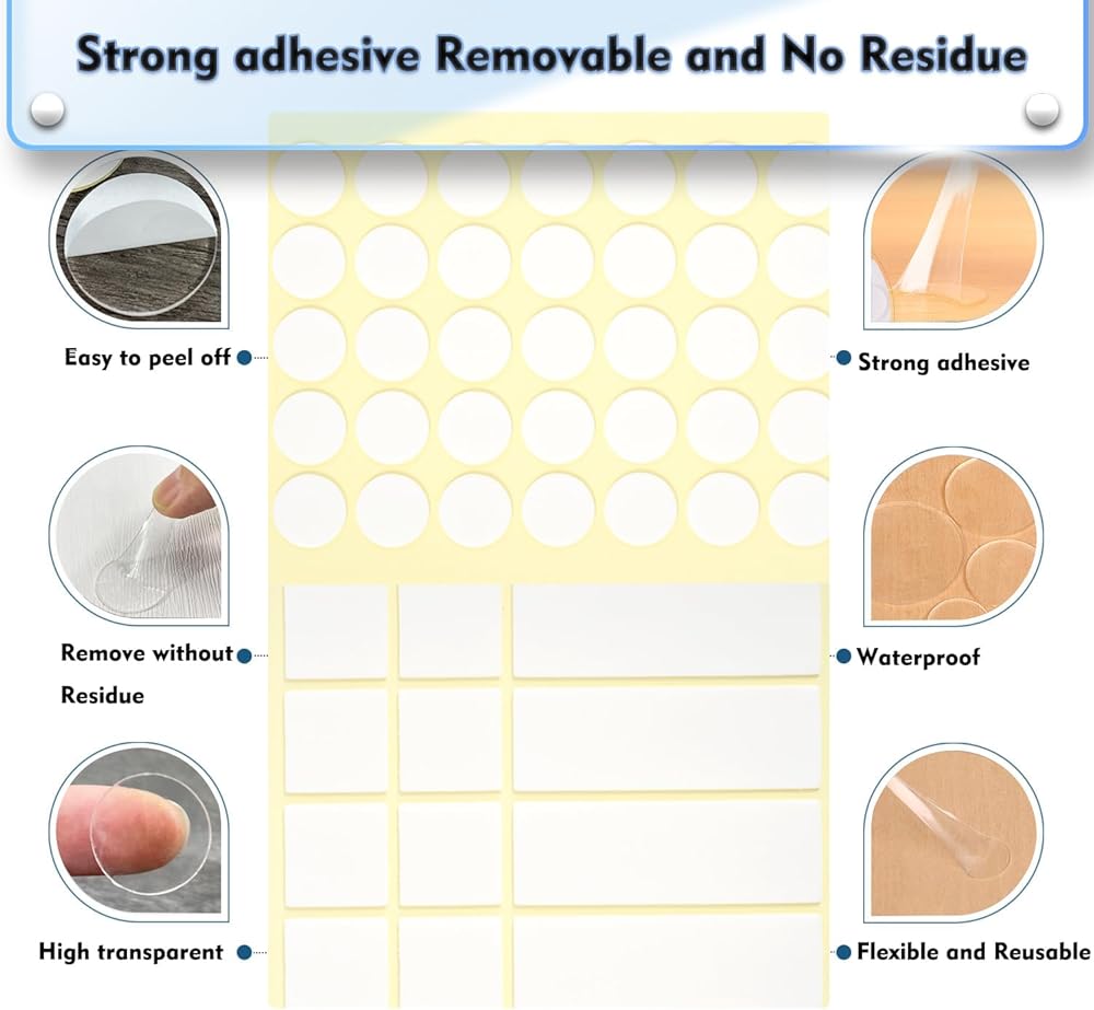 • جودة عالية وحجم مثالي: شريط المعجون ذو الوجهين مصنوع من مواد عالية الجودة، وهي مرنة ومتينة وشفافة ويمكن إعادة استخدام الشريط. تتضمن مجموعة المعجون 200 قطعة من المعجون الشفاف المستدير (0.8 بوصة * 0.8 بوصة لكل قطعة لاصقة)، 32 قطعة من مربعات المعجون الشفافة للتثبيت (1 بوصة * 1 بوصة لكل قطعة لاصقة)، 16 قطعة مستطيلة من المعجون الشفاف (1 بوصة * 3 بوصة)