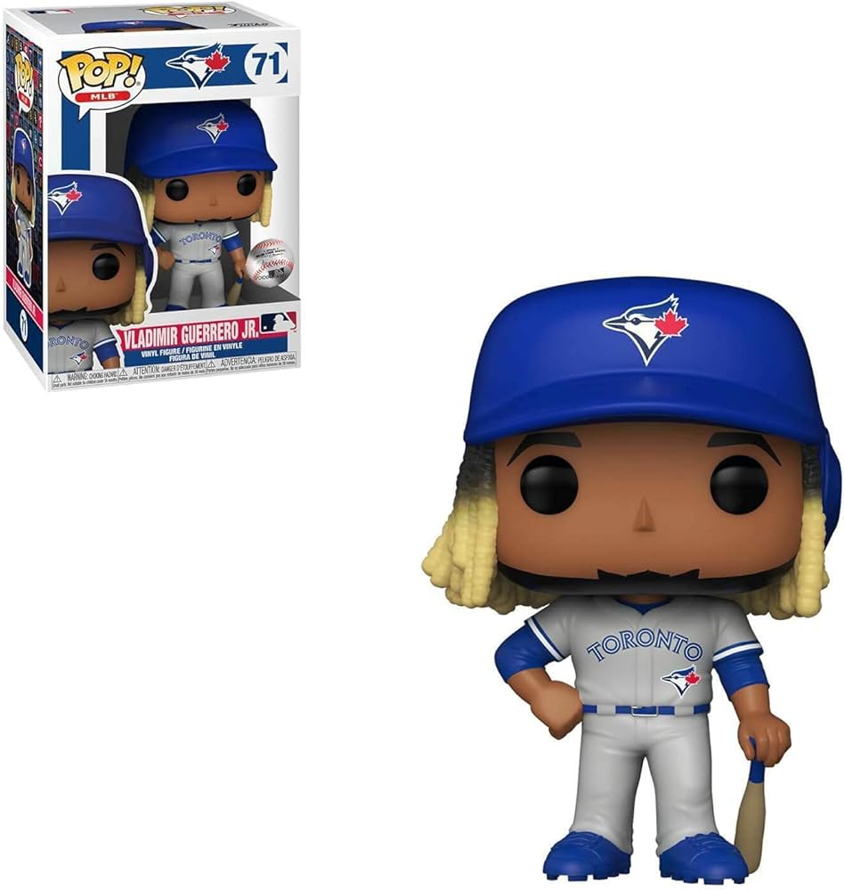 From Major League Baseball, Vladimir Guerrero JR #71, as a stylized Pop vinyl. The figure stands 3 3/4 inches and comes in a window display box. Check out the other baseball Pop Vinyl's Vladimir Guerrero JR, Anthony Rendon, Ozzie Albies, Christian Yelich, Cody Bellringer, Javier Baez, Corey Seager, Stephen Strasburg, Fernando Taxis Jr, Pete Alonso, Whit Merrifield, Jose Berrios, Gerrit Cole, Ketel Marte, Mookie Betts. (Each Sold Separately) Includes a Pop box protector fit for any collectors investment.