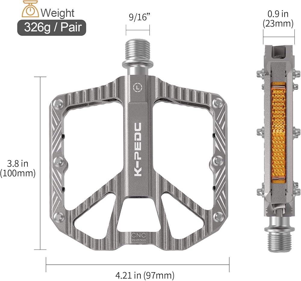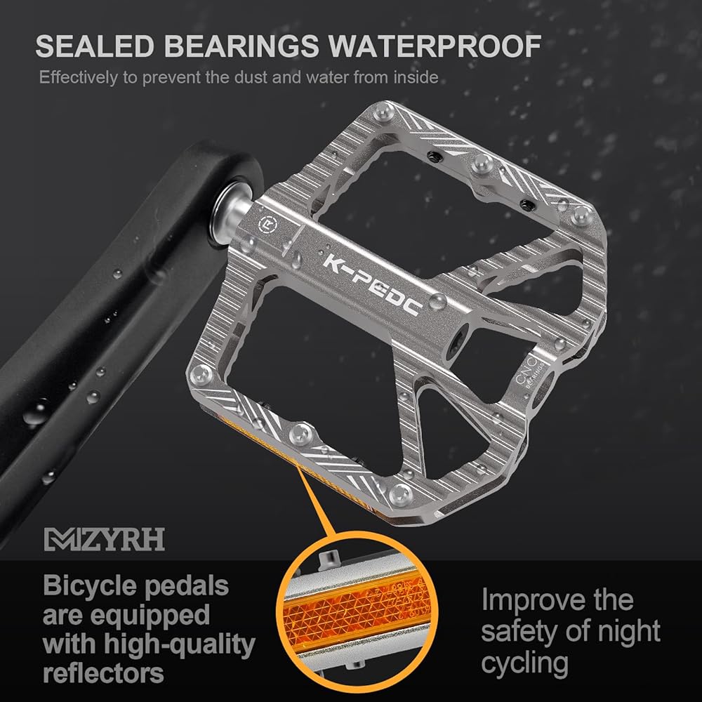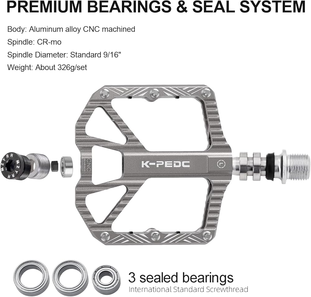 【محامل ناعمة】: 3 دواسات دراجة تحمل محكمة الغلق تحمي المغزل من الماء والغبار الذي قد يسبب الضوضاء ومشاكل أخرى، مما يتيح لك الاستمتاع بركوب الدراجات في المطر أو التسلق. المقاس: 4.21*3.8*0.9 بوصة، 0.7 رطل لكل زوج من دواسات الدراجة.