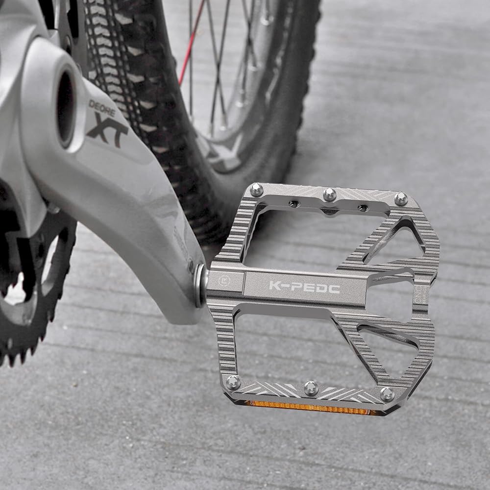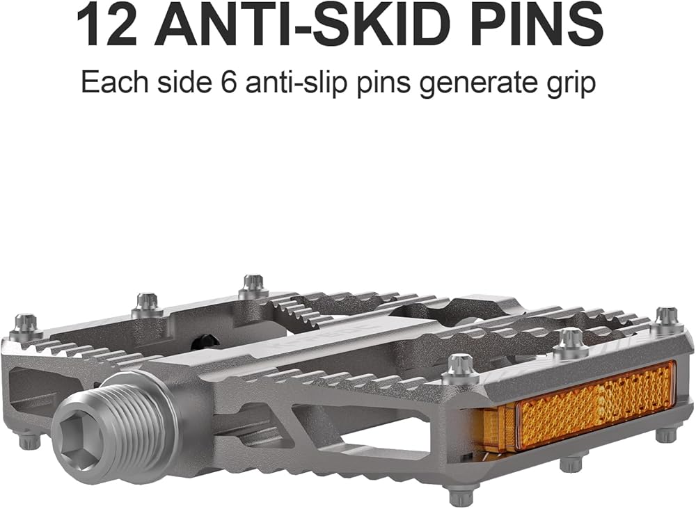 【قوي ومتين】: الجسم الرئيسي لدواسات الدراجة مصنوع من سبائك الألومنيوم عالية الجودة ويتم قطعه بواسطة آلة CNC والسطح مؤكسد ومقاوم للخدش ومقاوم للاهتراء لحماية دراجة الدواسات الجبلية من الأكسدة. تمنع الصدأ وتحسن عمر دواسات الدراجة الجبلية.