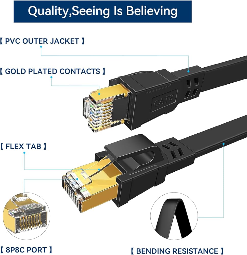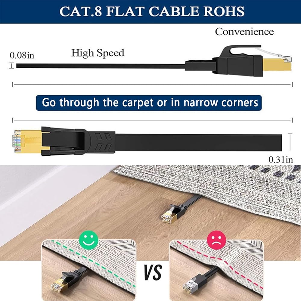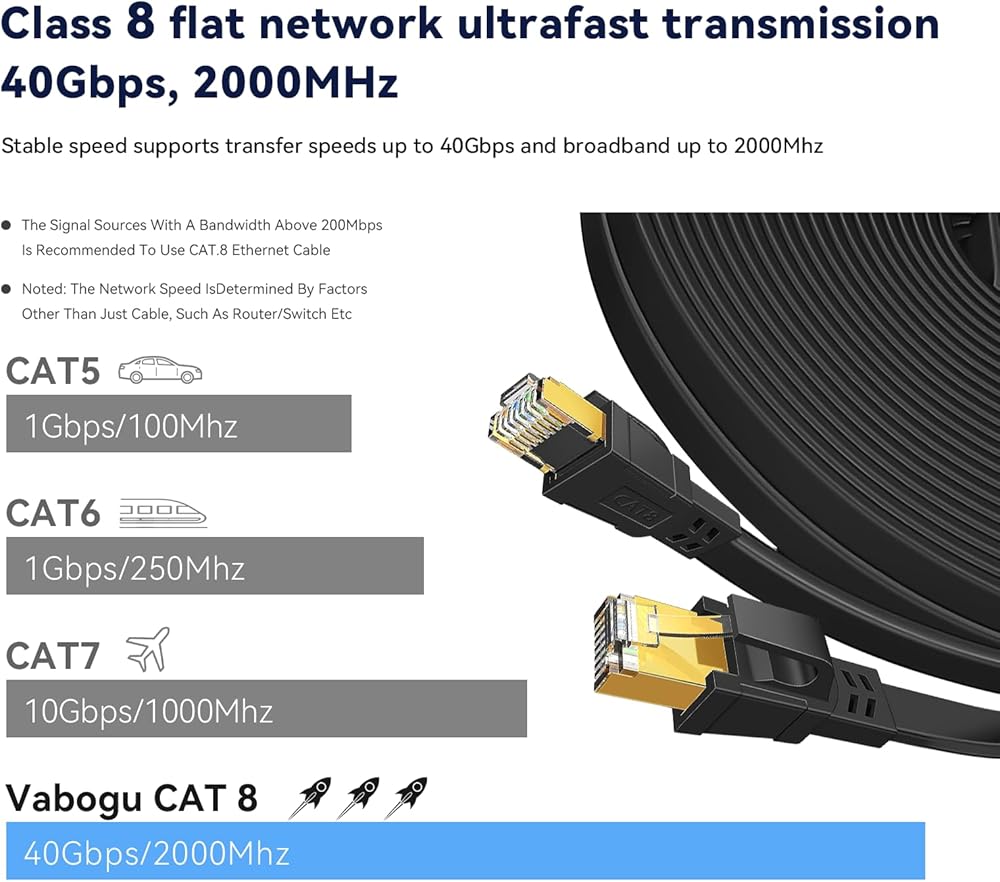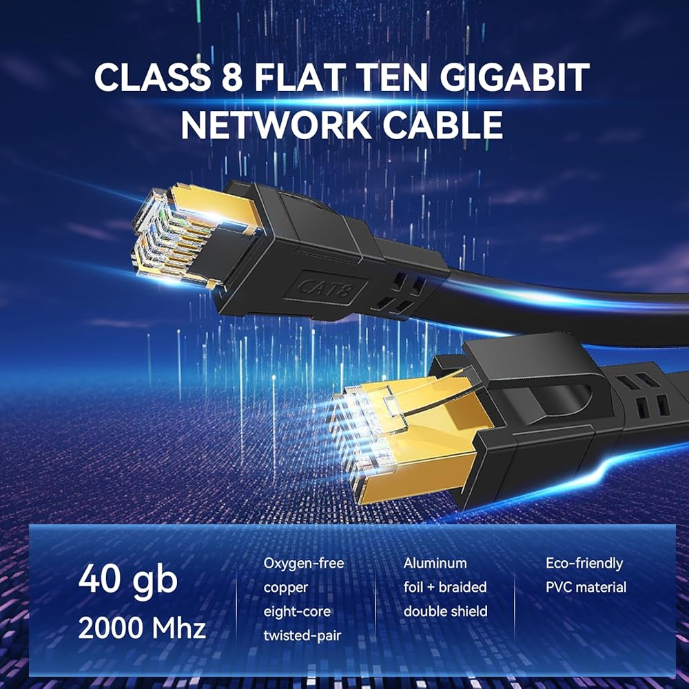 ✅سرعة عالية وعرض النطاق الترددي: يدعم كابل Dacrown Cat 8 Ethernet سرعات نقل البيانات تصل إلى 40 جيجابت في الثانية وعرض النطاق الترددي 2000 ميجاهرتز، مما يضمن اتصال شبكة مستقر وخالي من التأخر لتطبيقات الخادم وبث الفيديو عالي الدقة عبر الإنترنت والألعاب.