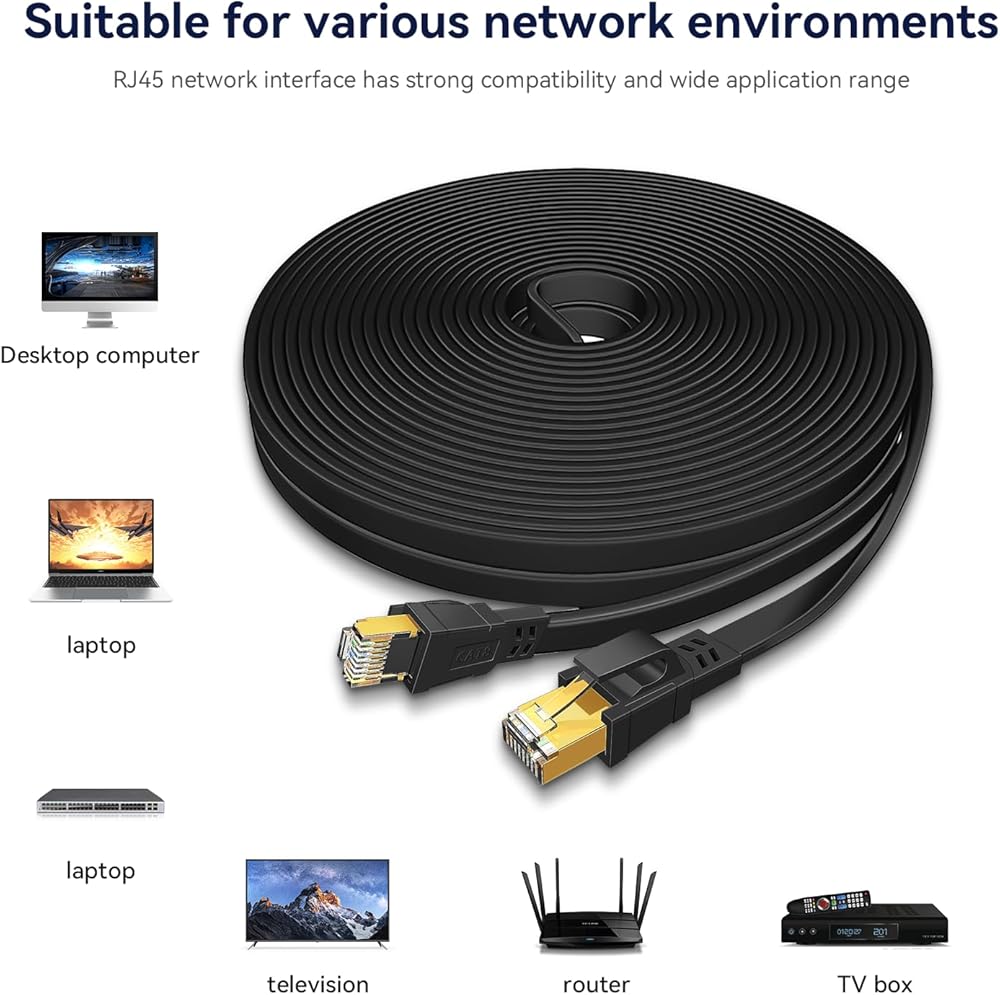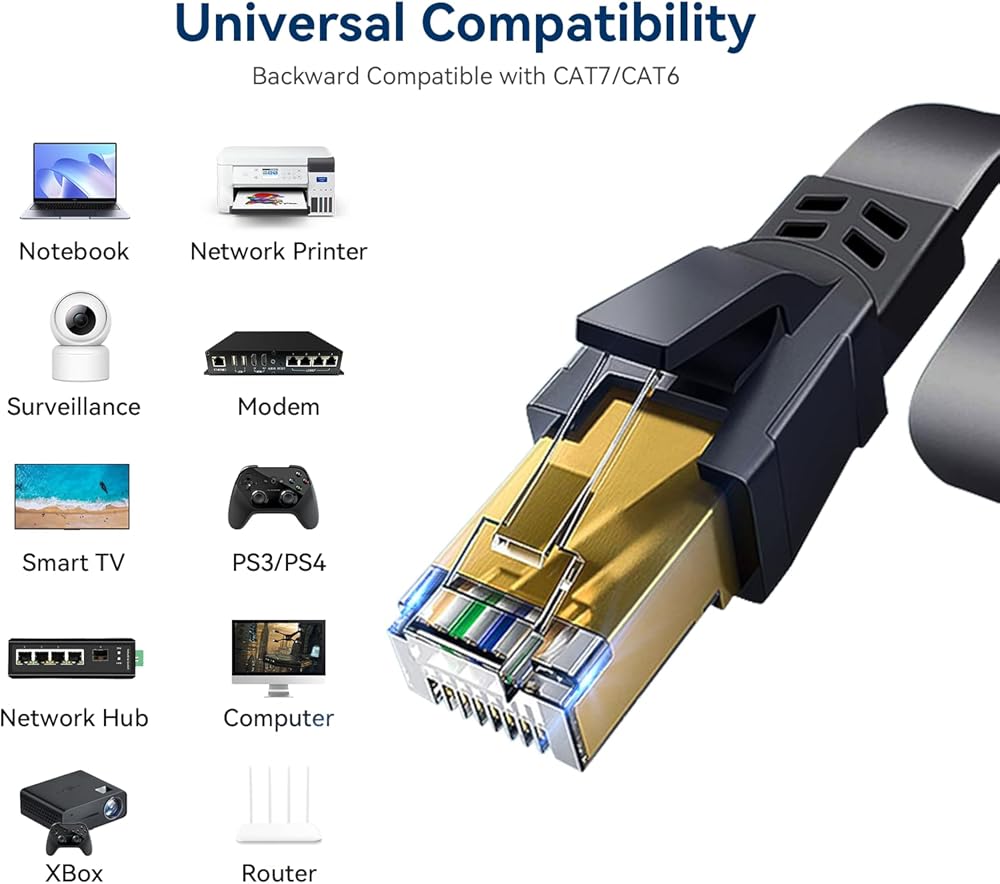 ✅توافق واسع: كابل Dacrown Cat 8 Ethernet متوافق مع مجموعة واسعة من أجهزة الشبكات، بما في ذلك المفاتيح وأجهزة التوجيه وأجهزة الألعاب وأجهزة المودم والطابعات. كما أنه متوافق تمامًا مع معايير Cat7 وCat6e وCat6 وCat5e وCat5، مما يوفر اتصالاً عالميًا.