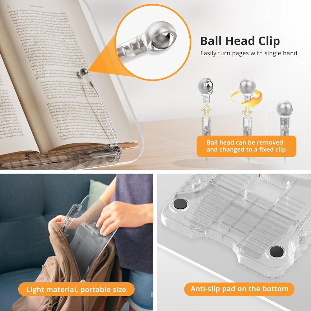 【مشبك صفحة رأس الكرة】تم تصميم مشبك صفحة رأس الكرة خصيصًا لقلب الصفحات بيد واحدة. إذا كنت ترغب في إصلاح الصفحة، فما عليك سوى سحب رأس الكرة وقلبها وإرفاقها مرة أخرى.