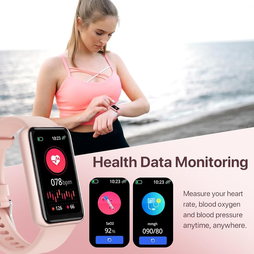 ساعة WalkerFit لتعقب اللياقة البدنية للنساء، Reloj Inteligente Mujer مع مراقب ضغط الدم ومعدل ضربات القلب والنوم، ومتتبع النشاط المقاوم للماء وساعة Android الذكية لهواتف iPhone، ومتتبع الخطوات، وعداد الخطى