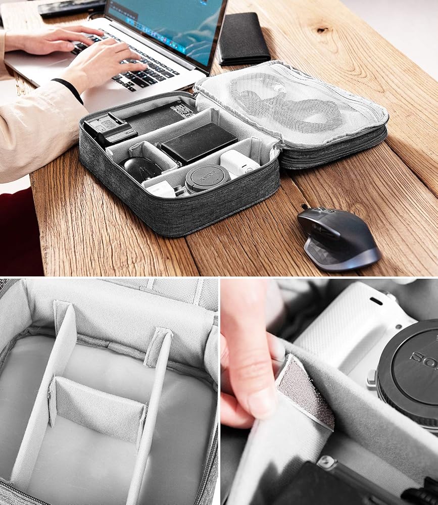 【 سهلة التعديل والحمل 】أربعة فواصل مبطنة لحقيبة منظم كابلات السفر هذه تسمح لك بتخصيص الحجرة. هل يمكن تعديلها لاحتياجاتك. إنها حقيبة رائعة لتنظيم ملحقات الإلكترونيات أو حقيبة تنظيم كابلات الكمبيوتر. مثالية للاستخدام المنزلي أو السفر