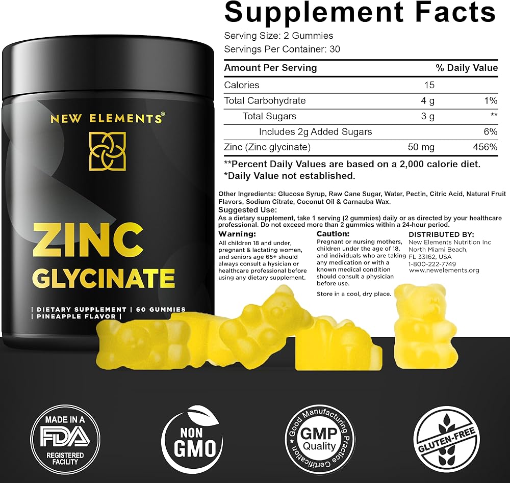 صمغ غليسينات الزنك للبالغين | مكملات الزنك 50 ملغ | يدعم صحة المناعة | التمثيل الغذائي | ملحق للعناية بالبشرة | نباتي | غير معدل وراثيًا | خالي من الغلوتين | نكهة الأناناس الطبيعية | بواسطة عناصر جديدة