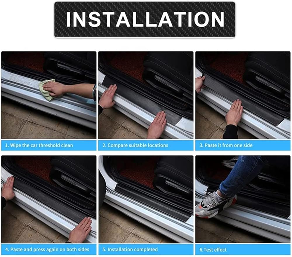 The carbon fiber protector sticker protects the car's door sill from scratches, bruises or paint. Easy to install and easy to use.