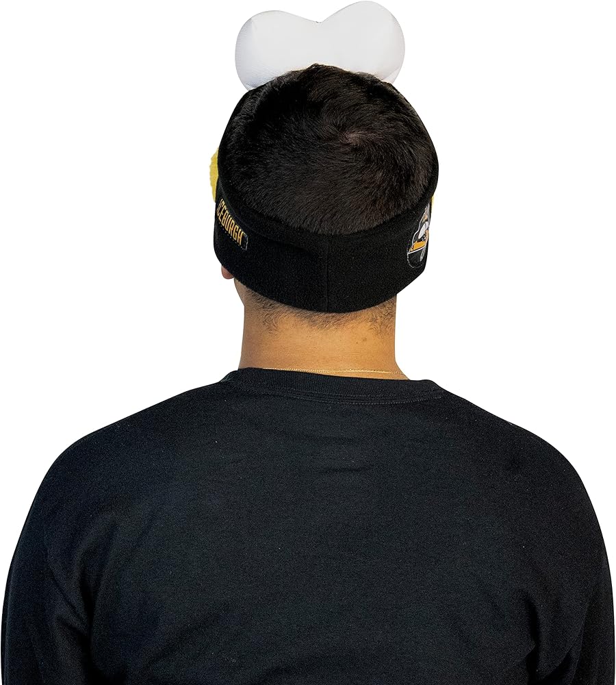 تشتمل على: تشتمل معدات المروحة هذه على عصابة رأس التميمة. شعار Pittsburgh Penguins المفضل لديك مطبوع على أحد الجانبين و"Iceburgh" مطبوع على الجانب الآخر من عصابة الرأس!