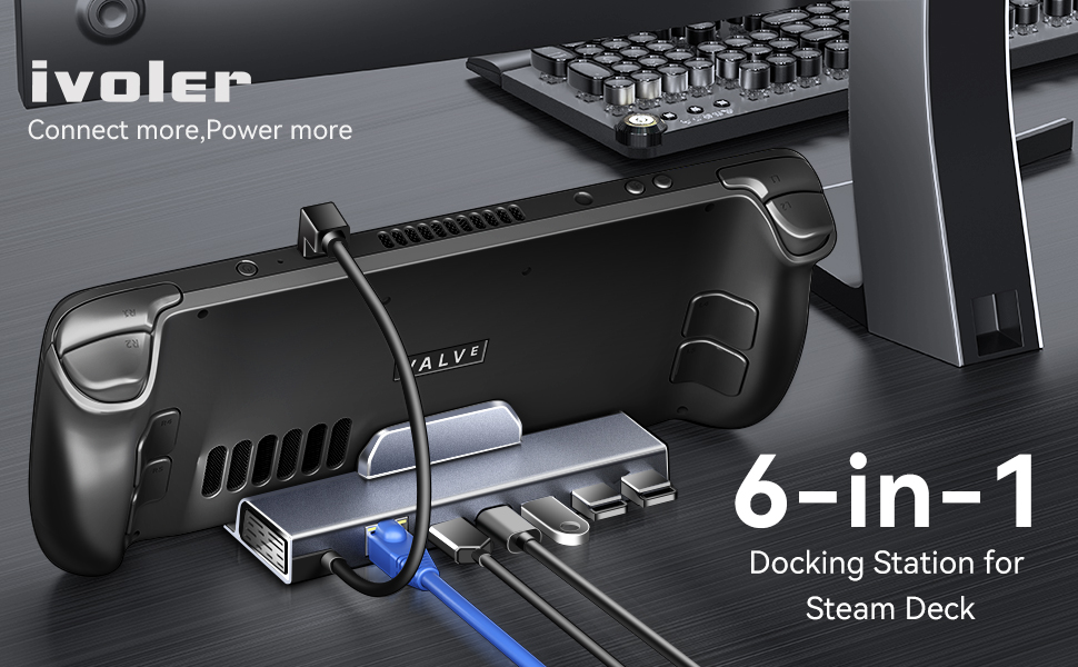 ⚡[واحد يكفي] قاعدة شحن من الألومنيوم iVoler 6 في 1 لسطح البخار/لجهاز ASUS ROG Ally، مجهزة بمخرج HDMI 4K@60 هرتز، ومدخل جيجابت إيثرنت، وثلاثة منافذ USB-A 3.0 ومنفذ USB-C للشحن، مما يتيح لك استكشاف طريقة جديدة للعب مع ROG Ally/Steam Deck
