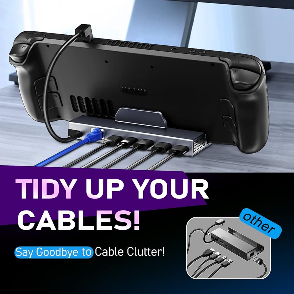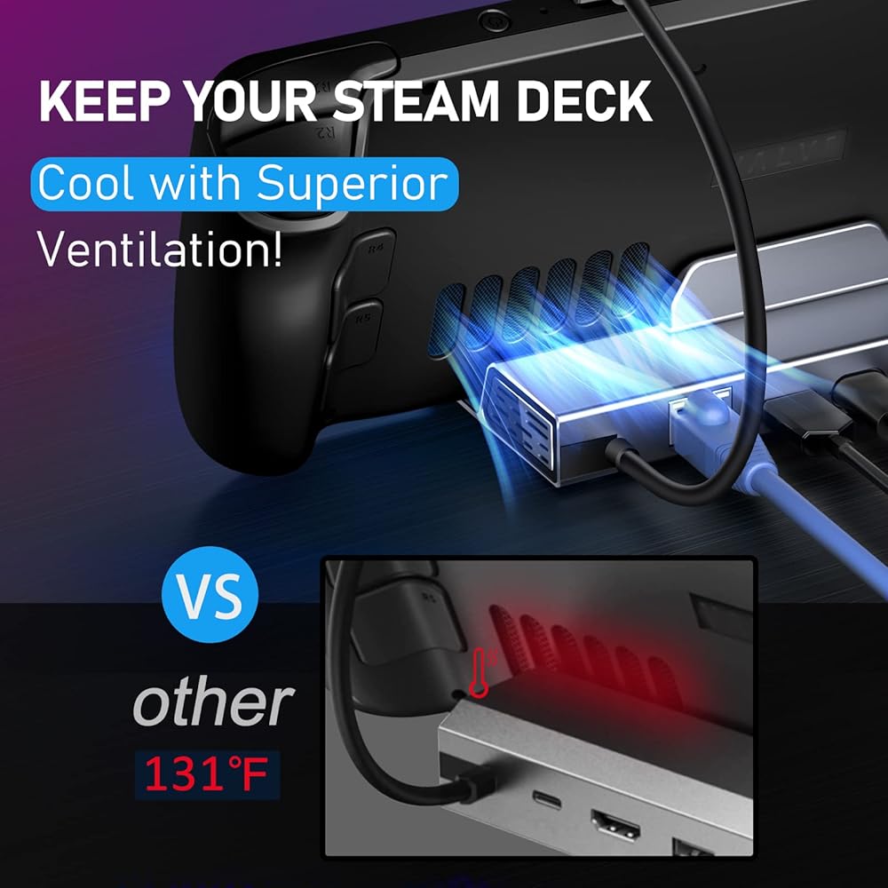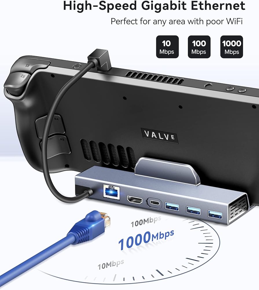 محطة إرساء LAN مُحدثة بسرعة 1000 ميجابت في الثانية من iVoler لمنصة Steam Deck/ROG Ally/Steam Deck OLED، جيجابت إيثرنت، قاعدة ألومنيوم مع HDMI 2.0 4K@60 هرتز، 3 قاعدة شحن سريعة USB3.0 لسطح البث، سبيكة ROG