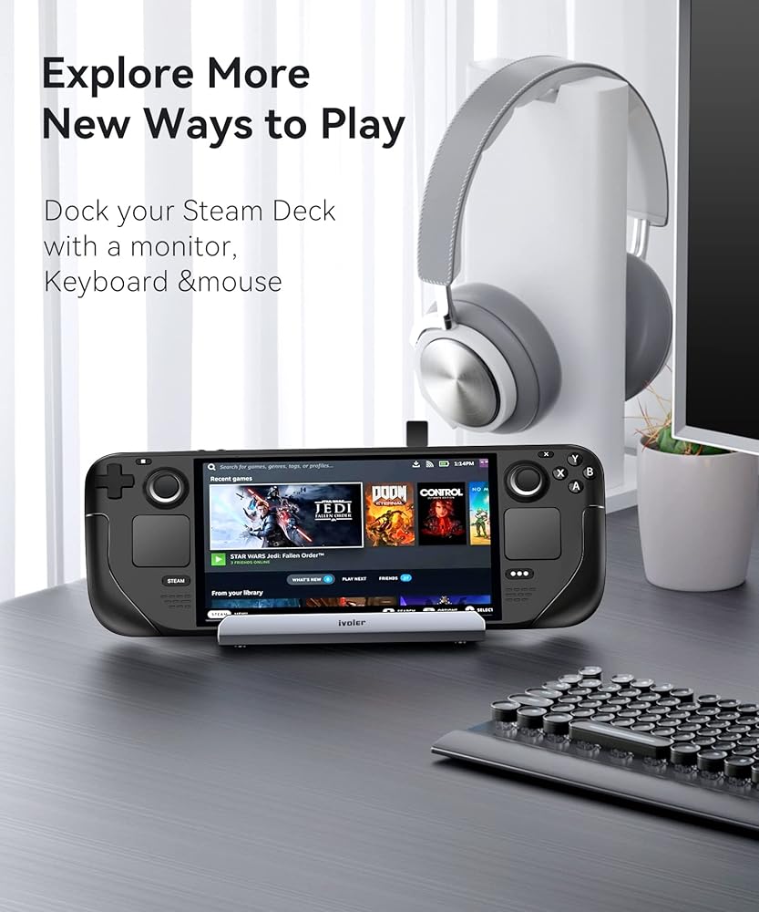 ⚡[محمول وخفيف الوزن] هذا مزيج مثالي لـ ROG Ally/Steam Deck. تمزج محطة إرساء Steam Deck الكل في 1 من iVoler بين المحور والوقوف معًا بشكل مثالي. لا يتعين عليك شراء محور عادي وقاعدة حامل لجهاز Steam Deck الخاص بك، وهو ليس فقط أسهل بالنسبة لك في الاستخدام، ولكنه يحافظ أيضًا على سطح المكتب الخاص بك أنيقًا ومنظمًا.