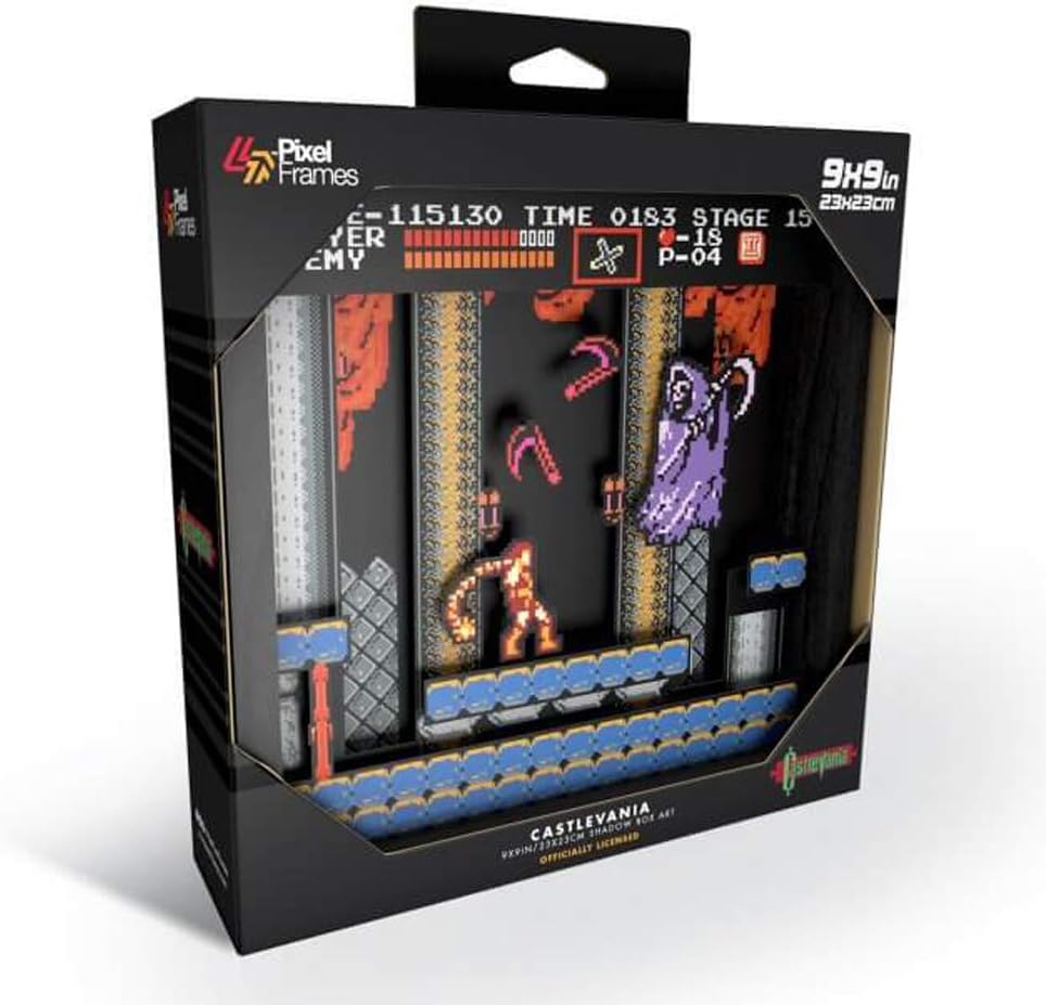 لوحة فنية لصندوق الظلال الكلاسيكي مقاس 9 × 9 بوصة من Castlevania Grim Reaper NES (كبير) (PF-KN-103)