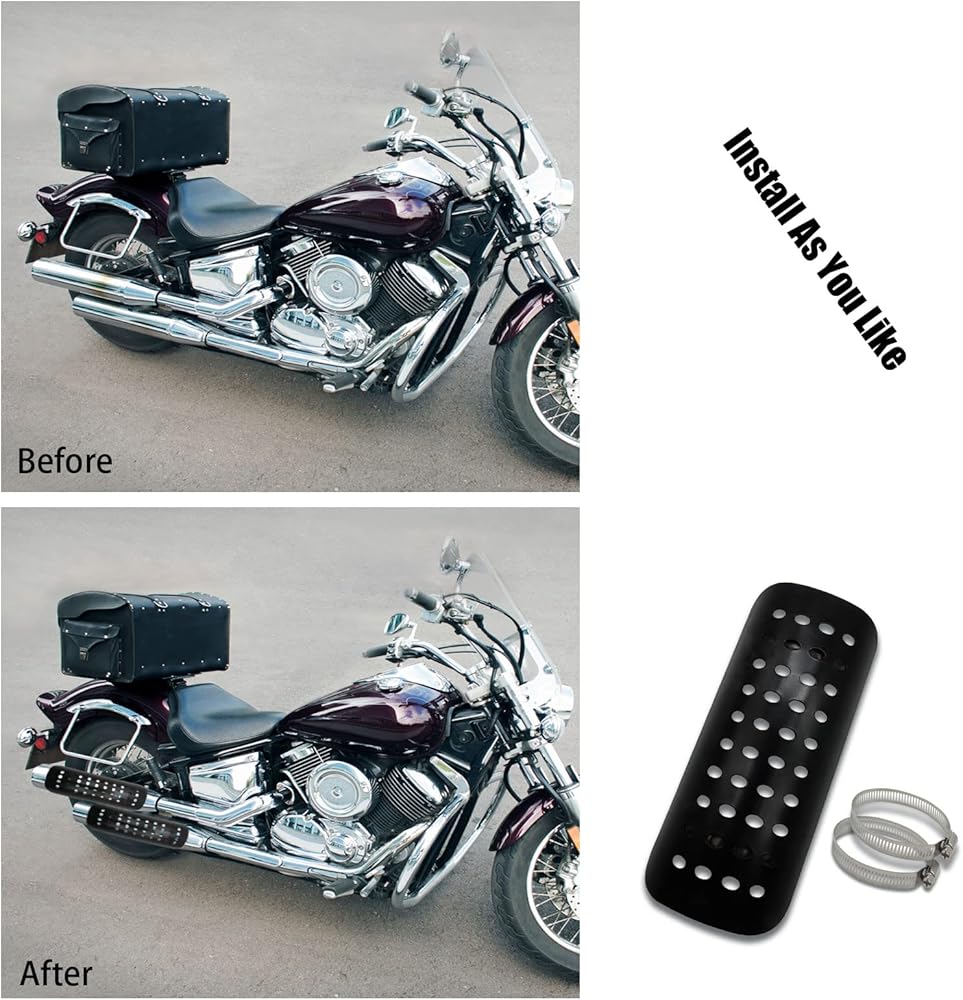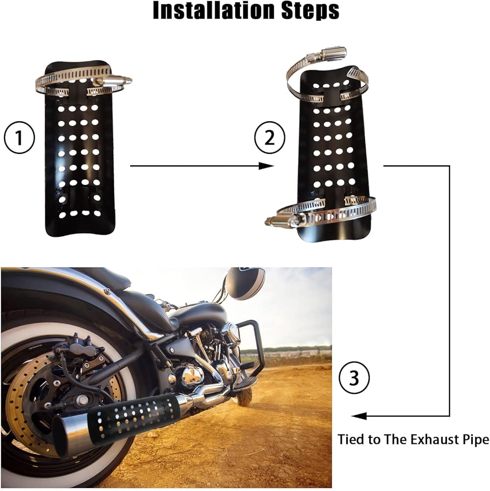 درع حرارة عادم الدراجة النارية، درع عازل للحرارة لأنبوب العادم العالمي، غطاء عازل للحرارة لأنبوب العادم المعدني مع مشبكين (أسود)