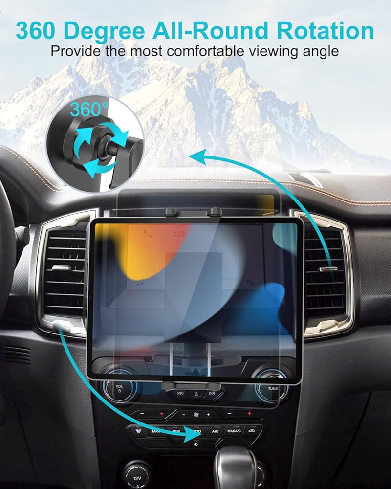 【قوي وغير قابل للانزلاق】يحتوي مشبك فتحة القرص المضغوط على 3 شفرات، مما يزيد من منطقة الاتصال بمنفذ القرص المضغوط للسيارة، ويحتوي على وسادات مطاطية لتوفير قبضة إضافية، حتى لا ينزلق حامل الكمبيوتر اللوحي من منفذ القرص المضغوط للسيارة، و لن يضر بمنفذ القرص المضغوط للسيارة.