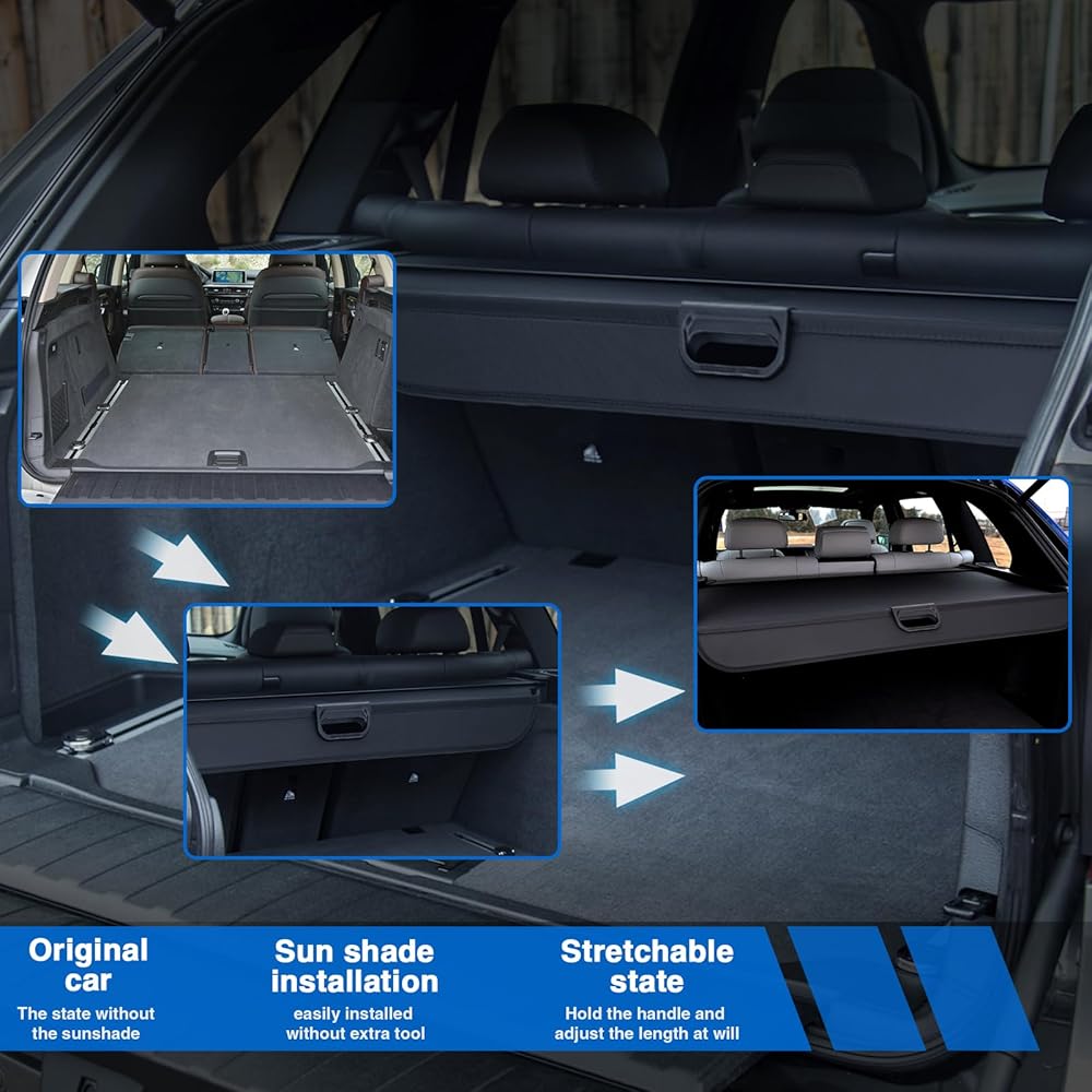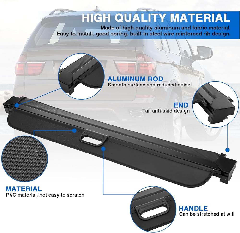 MotorFansClub غطاء ظل البضائع SUV القابل للسحب مناسب لسيارات BMW X5 E70 F15 2007 2008 2009-2015 2016 2017 2018 الأمتعة الخلفية باللون الأسود
