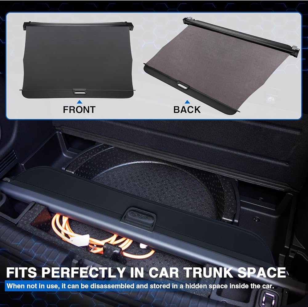 - بسيط وواسع، ومقاوم للضوء، ومثبط للاشتعال، ويحجب الأمتعة في الصندوق الخلفي، ويحمي محتويات السيارة والخصوصية الشخصية.