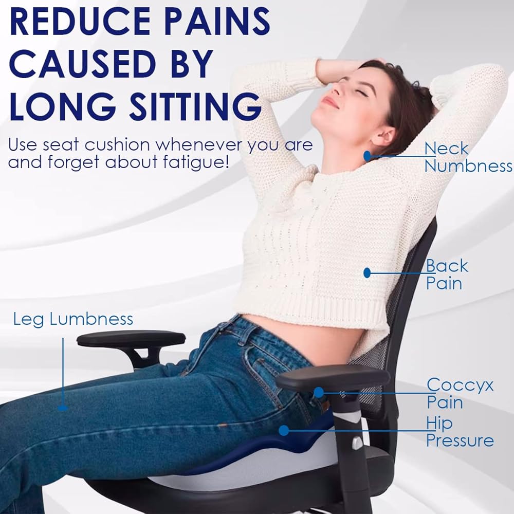 وسادة كرسي المكتب، وسائد مقعد لتخفيف الضغط لعظم الذيل والظهر وتخفيف آلام العصعص، وسادة مريحة من إسفنج الذاكرة للسيارة والكمبيوتر وكراسي المكتب باللون الأزرق الداكن