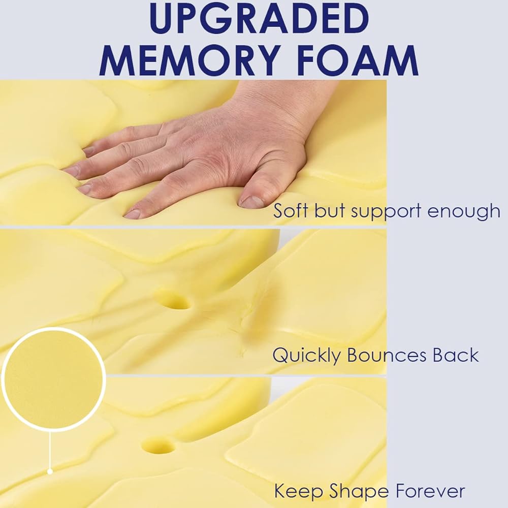 • ✔️[إسفنج ميموري فوم ممتاز] مصنوع من مادة إسفنجية متطورة تجعله بعيدًا عن الجل الصلب التقليدي ووسادة المقعد الإسفنجية الناعمة لتخفيف الضغط. مع القدرة على توفير الدعم الشامل بمجرد الجلوس، تتميز وسادة كرسي المكتب أيضًا بمرونة استثنائية، مما يضمن احتفاظها بشكلها حتى بعد فترات طويلة من الاستخدام.