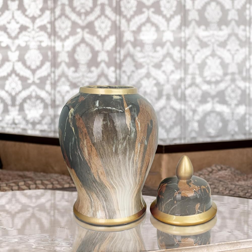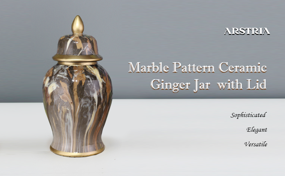 • تصميم بنمط رخامي: تتميز برطمان الزنجبيل الخاص بنا بنمط رخامي مذهل، مصنوع من السيراميك عالي الجودة، ويمزج بين الرقي الكلاسيكي والجمال الحديث الذي يرفع ديكور منزلك دون عناء.