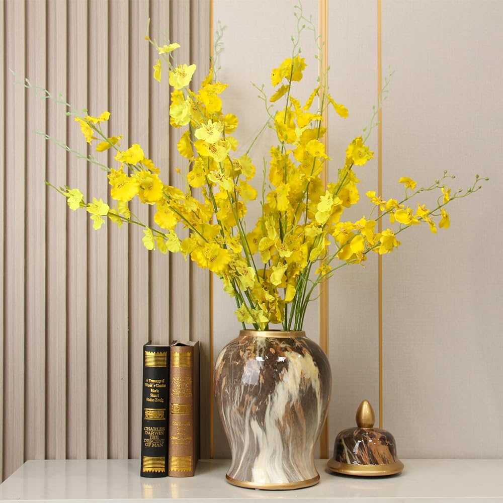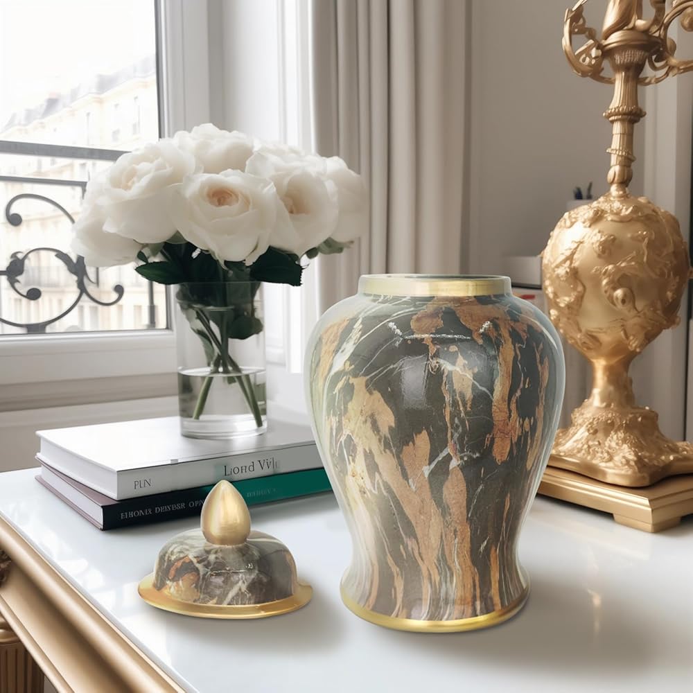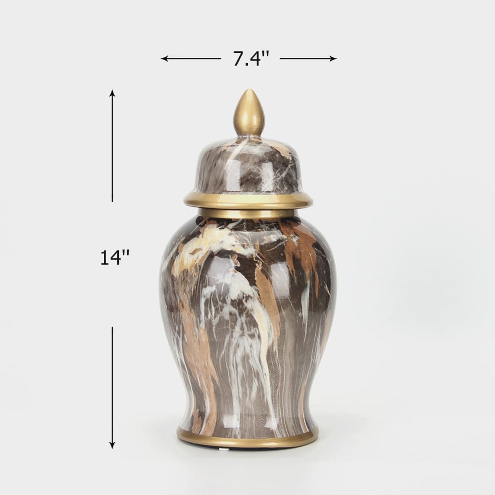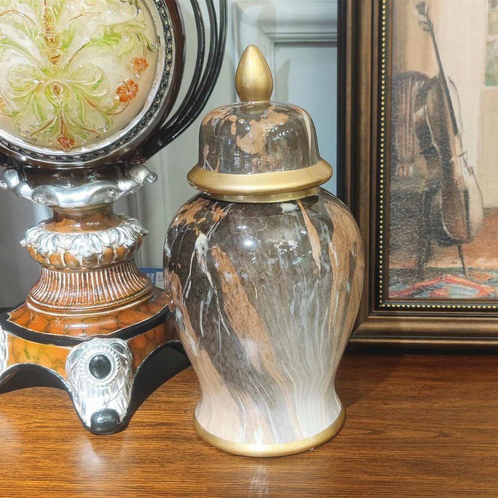 برطمان زنجبيل سيراميك بنمط رخامي مع غطاء برطمان معبد مزخرف للمنزل والمكتب وغرفة المعيشة وغرفة النوم