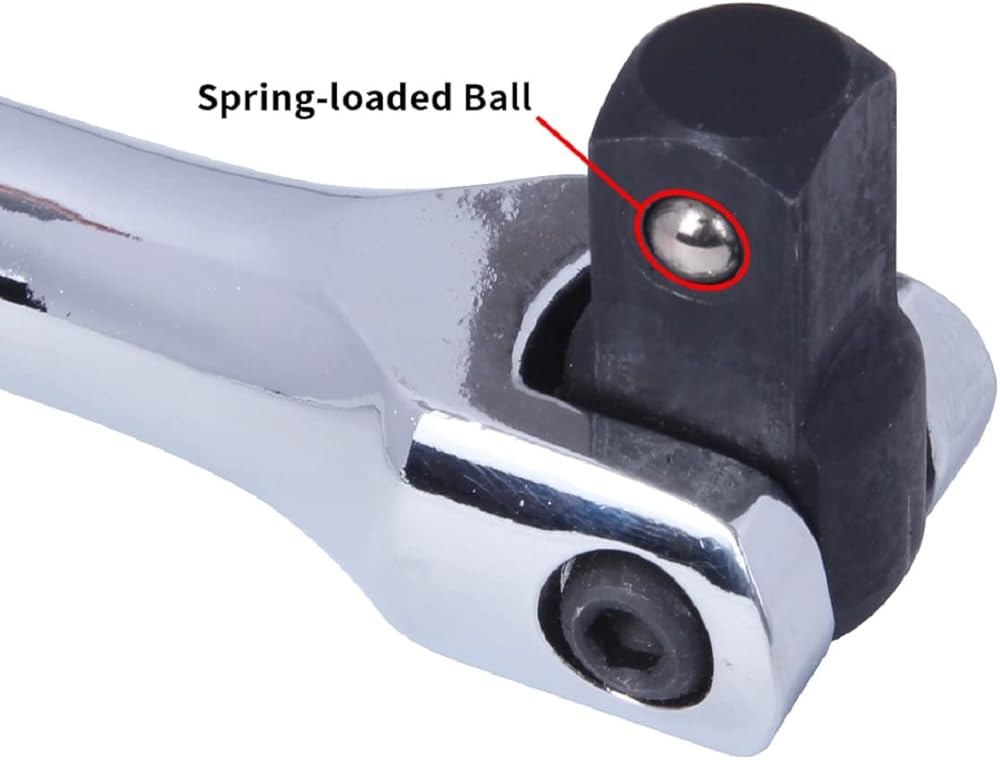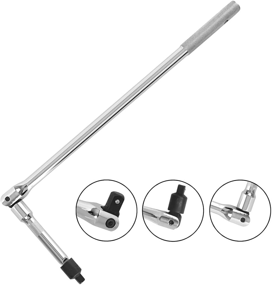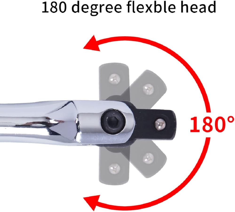 UNIQUE DESIGN - The design of the 1/2 breaker bar includes a flexible head that can rotate up to 180 degrees, and it also features a spring-loaded ball to securely hold your socket in place. This tool is ideal for effortlessly breaking or loosening stubborn nuts and bolts on your car or vehicle, even if they're rusted or stuck.